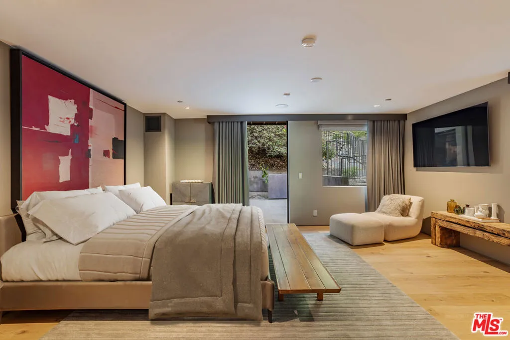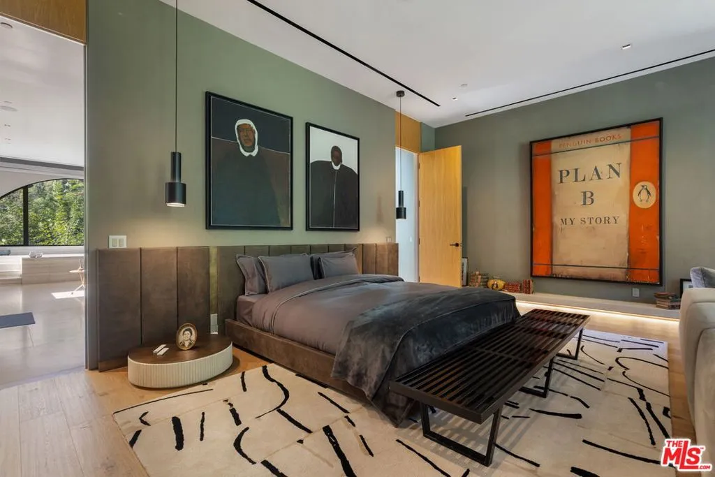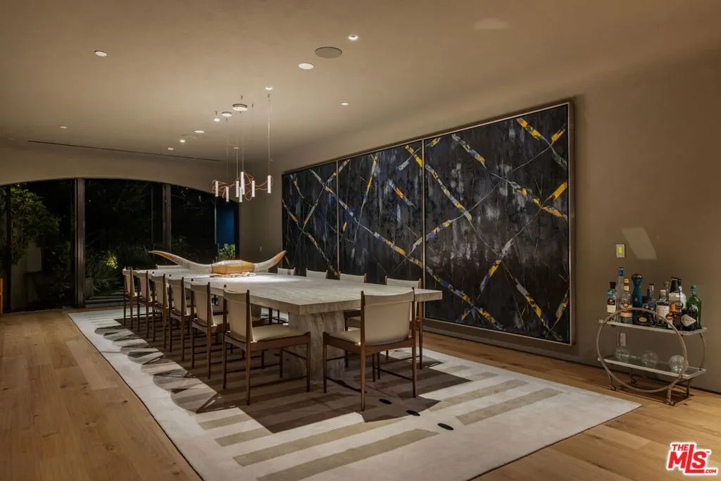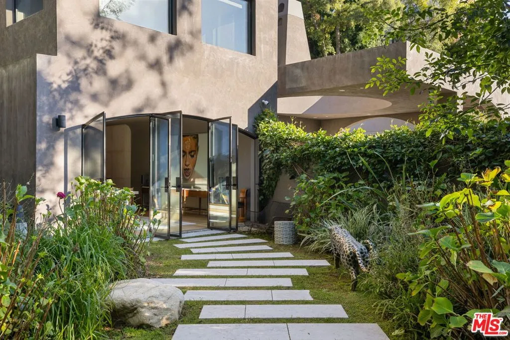A rare architectural estate of exceptional privacy and design pedigree, tucked within a gated Brentwood enclave moments from The Getty. Completed in 2024 by AD100 designers Studio Shamshiri, this one-of-a-kind residence sits on a 1.2-acre gated lot offering exceptional privacy. Controlled gates open to an expansive motor court and an underground garage for six automobiles, leading to a dramatic entry anchored by sculptural curves and a soaring helical staircase that defines the home’s bold signature. The main residence offers five bedrooms, complemented by a separate one-bedroom guest house. Four bedrooms are located on the second level, while the top-floor primary suite is a private sanctuary with a spa-like bath, large closets, and a spacious rooftop terrace with a fireplace. Outdoors, The grounds evoke a resort-like atmosphere, anchored by a Moroccan-influenced pool, multiple lounging and entertaining terraces, and manicured landscaping. The signature experience is a private funicular that ascends from the main grounds to two separate luxury yurts perched high above the estate, each complete with bathrooms, power, and water, revealing panoramic canyon and ocean views at the summit, while a walking path offers an equally scenic route to the top. Designed for large-scale entertaining and refined daily living, the home features seamless indoor-outdoor flow, high ceilings, hand-troweled plaster walls, bronze accents, and seven fireplaces throughout. The Wolf and Miele kitchen with bespoke millwork flows seamlessly into a temperature-controlled wine vault, professional bar, and formal dining spaces. With whole-home Control4 automation and surround sound, this exceptional property delivers unparalleled privacy, design pedigree, and a truly unforgettable living experience.