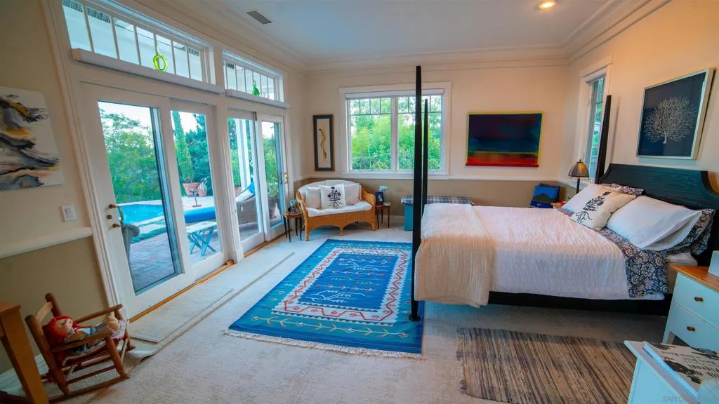 One foot in the ranch and one foot in the sand—this custom Olivenhain estate offers peaceful, open-space living just minutes from Encinitas beaches and coastal amenities. Positioned to capture southeast-facing morning light, the home is filled with natural brightness and a calm, serene atmosphere throughout the day. The residence offers 4,774 square feet with five bedrooms and five bathrooms, featuring cherry hardwood floors, classic brick fireplaces, and beautifully appointed electronically operated skylights that enhance light and comfort at the touch of a button. The floor plan is designed for both everyday living and entertaining, with seamless indoor-outdoor flow. Outdoors, a custom infinity-edge pool anchors the private grounds, creating a resort-style setting surrounded by mature landscaping and open skies. Additional highlights include owned solar panels and an electric vehicle charging station. Situated on nearly 0.6 acres with no HOA, this is a private and thoughtfully designed home offering space, serenity, and coastal proximity—where ranch-style calm meets Southern California beach living.