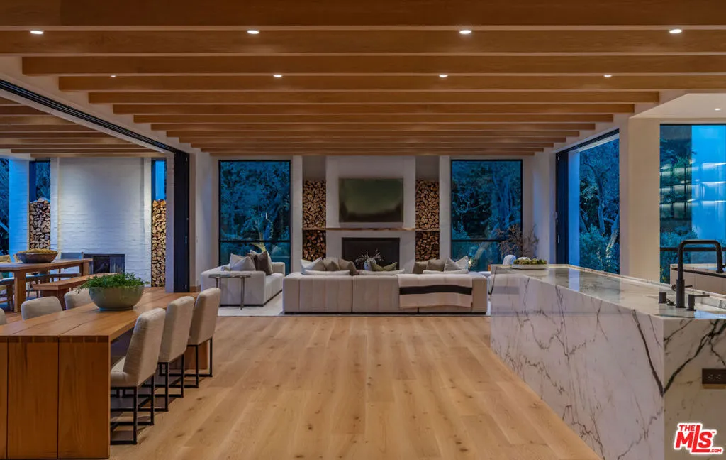 Welcome to “Five Fathoms” the latest creation by celebrity designer Jae Omar and architect Eran Gispan. A residence of timeless beauty and organic architecture, it is set on a nearly 21,000 square foot lot. This 9,800 square foot residence unfolds across five distinct structures, thoughtfully connected by glass-encased walkways that “float” over meandering waterways. The interior aesthetic showcases Omar’s signature “organic modern” approach, featuring a textural symphony of sandblasted stone, vanishing walls of glass, and meticulously crafted white oak accents that converge in perfect harmony. The primary suite stands as a singular retreat, complete with a private library, a vast deck, and an ethereal, stone-wrapped bathroom that is cloaked in natural light from strategic skylights that continue into the custom walk-in closets. Additional features include an ADU conceived as a serene wellness retreat, a 65-foot swimming pool adorned with a grand spa and cold plunge, expansive cobblestone terraces, multiple outdoor fireplaces, a fully equipped alfresco kitchen, a state-of-the-art Dolby theatre, and a cutting-edge security system with voice-activated infrared technology. A legacy of contemporary design and luxury living. Dream big, live bigger at “Five Fathoms.”
