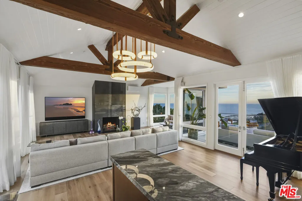 A pristinely redone and truly breathtaking Malibu “Serra Retreat” estate with commanding ocean views spanning the Malibu Pier, Surfrider Beach, and the endless whitewater coastline, securely positioned behind the 24-hour guard gates of Serra Retreat, Malibu’s most prestigious private enclave. A future equestrian estate awaiting vision and execution, this extraordinary offering presents a rare opportunity to create a world-class compound with a riding ring, guest residence, staff quarters, and resort-style amenities (buyer to conduct their own due diligence). Completely remodeled, the home is an elegant fusion of farmhouse-inspired exterior architecture and a richly layered warm-modern interior, embodying refined luxury, quiet sophistication, and one of the most commanding coastal vantage points in all of Serra Retreat. Every detail has been thoughtfully curated to elevate both form and function, creating a residence that feels timeless, substantial, and undeniably glamorous. Privately set on 3.3 acres across two parcels, the estate offers immediate luxury paired with exceptional future potential. The second parcel allows for the addition of a pool, tennis court, guest home, and equestrian riding ring (buyer to conduct their own due diligence), while directly bordering miles of protected hiking, biking, and horseback riding trails; an extraordinary blend of oceanfront drama and serene natural beauty.The residence spans approximately 5,548 square feet and features four ensuite bedrooms and four-and-a-half baths. A long, private gated drive leads to a formal entry where dramatic ocean views immediately captivate, framed by soaring vaulted ceilings, exposed wood beams, bespoke detailing, and expansive walls of glass capturing the coastline from nearly every room. From the moment of arrival, uninterrupted sightlines draw the eye outward to the Pacific, with sunlight dancing across refined interiors.A full-length ocean-view balcony extends across the home, offering a front-row seat to glowing sunsets, rolling surf, and the iconic Malibu Pier below. The main level is masterfully designed for both grand entertaining and intimate daily living. A sun-drenched living room features vaulted wood-beam ceilings, a sculptural metal fireplace, and inviting seating perfectly positioned to enjoy the coastline and evening skies. A full bar, formal dining room, and multiple lounging areas appear to float above the ocean, creating seamless flow throughout. The chef’s kitchen is both striking and highly functional, appointed with custom white-oak cabinetry, high-end stainless steel appliances, an expansive center island, fireplace, and walk-in pantry ideal for refined entertaining or quiet mornings overlooking the sea. Completing the main level are a guest bedroom with a second-story loft and additional sleeping area, a well-appointed laundry room, and a private dry sauna.A wide custom staircase leads to the lower level, where a generous entertainment lounge transitions into the primary suite; a luxurious private retreat bathed in natural light and breathtaking coastal views. Floor-to-ceiling windows frame the horizon, while the spa-inspired bath features a soaking tub, separate shower, and dual vanities. The suite opens directly to a private outdoor hot tub, perfectly positioned to capture Malibu’s legendary sunsets in complete privacy. Two additional ensuite bedrooms provide beautifully appointed accommodations for family and guests. Additional features include an oversized three-car garage, parking for five or more vehicles, and two graded pads ideal for future enhancements. Just moments from Cross Creek, world-class shopping, dining, and the beach, yet entirely removed from the noise,this remarkable estate delivers a rare combination of security, accessibility, acreage, and awe-inspiring views. Bold, glamorous, and unmistakably Malibu, located within one of California’s most exclusive gated communities.