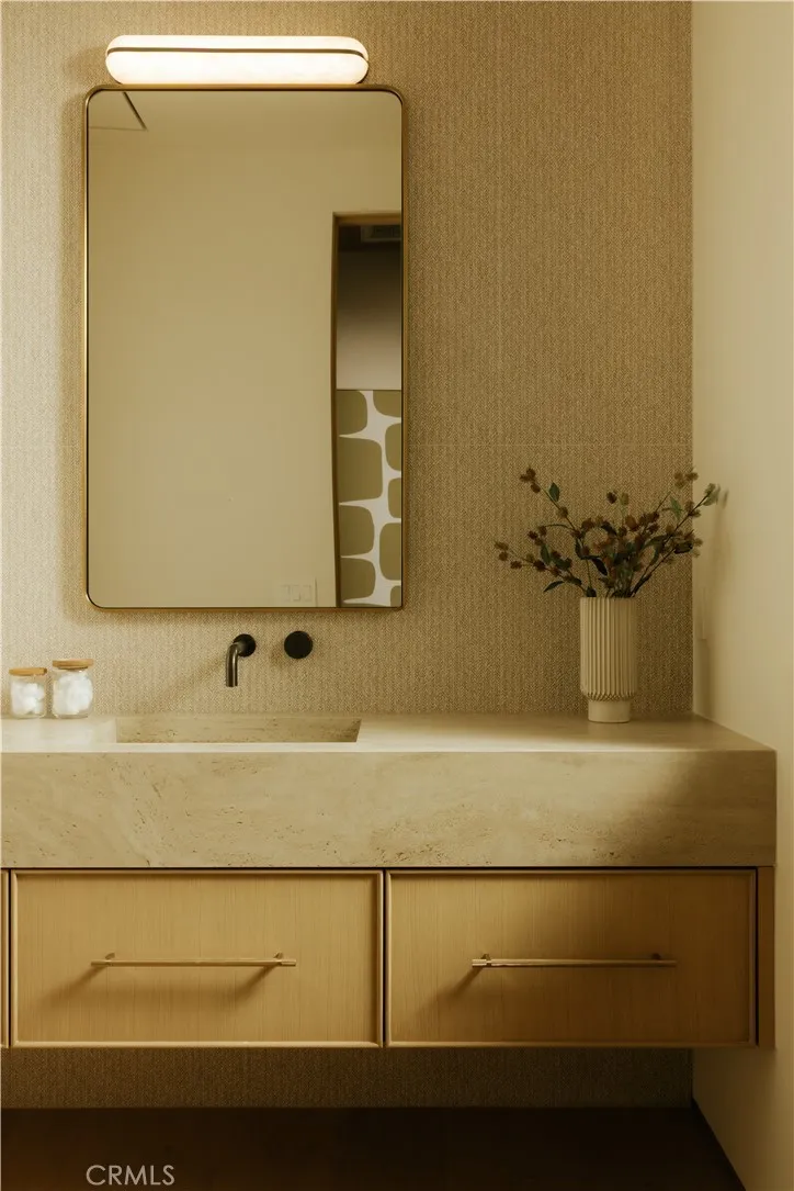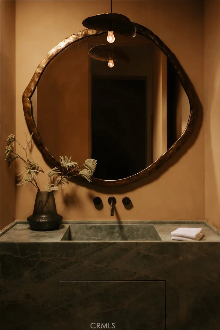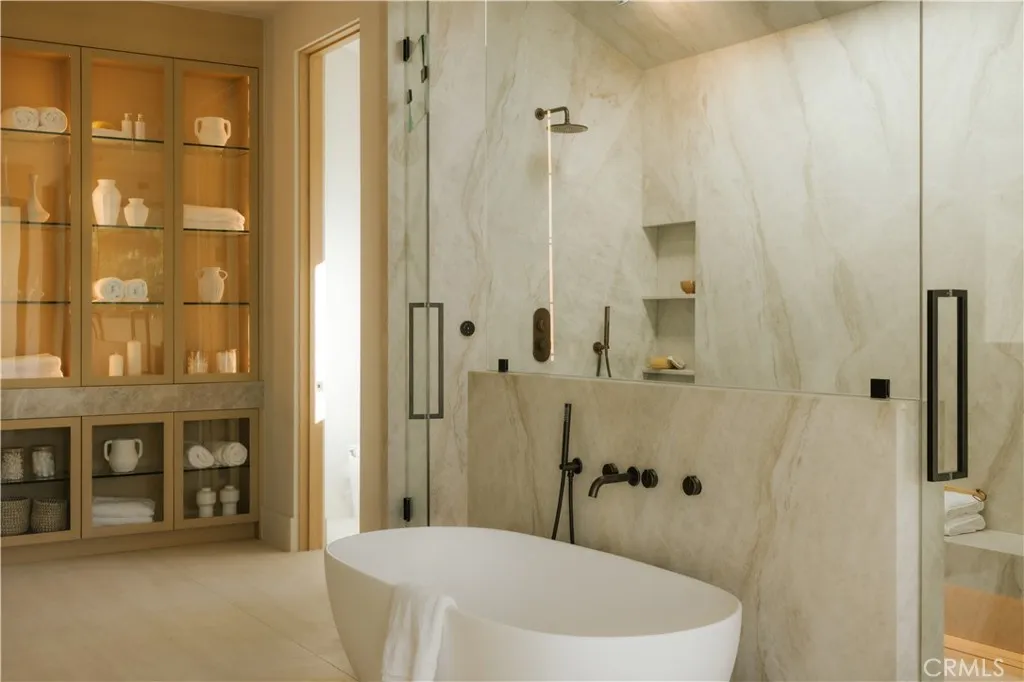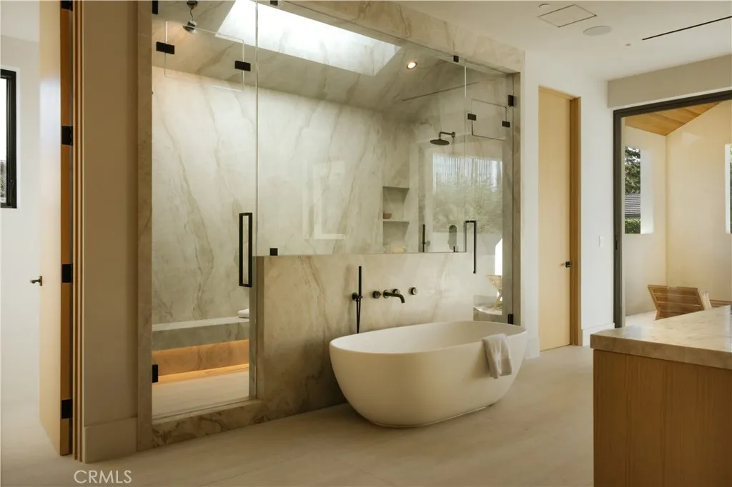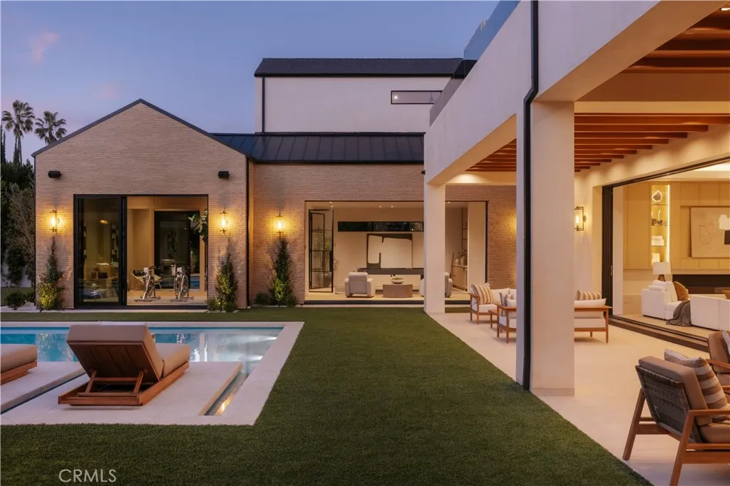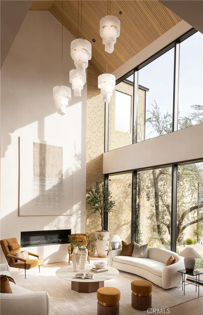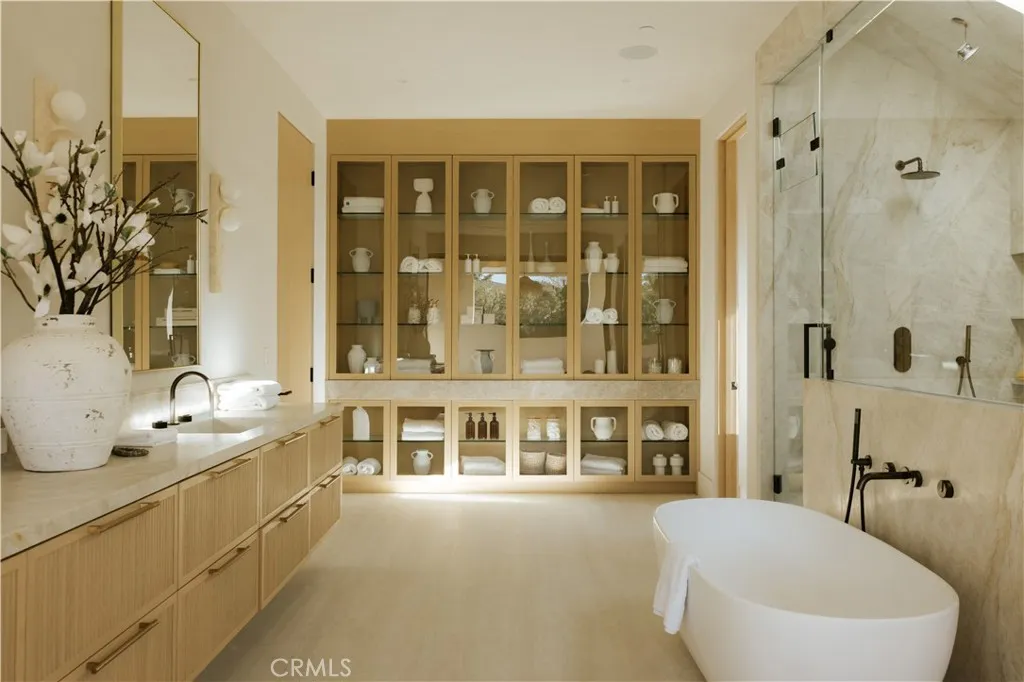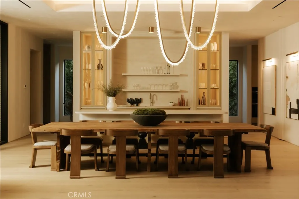 Introducing a masterfully crafted gated estate that redefines luxury living, privacy, and scale in the heart of Encino’s prestigious Royal Oaks enclave. Designed by acclaimed architect Eran Gispan and elevated by bespoke interiors from Sophea Design, the residence delivers a seamless balance of modern sophistication and resort-style living—crafted at the highest level. A grand circular motor court with paver detailing, and two mature olive trees creates a timeless sense of arrival and privacy. Inside, soaring two-story ceilings, hand-applied plaster walls, and warm wood detailing frame a light-filled, open floor plan. Wide-plank white oak floors extend throughout the entire home. The kitchen is a true statement of form and function, anchored by a double island wrapped in dramatic Calacatta Viola marble, Custom white oak cabinets, premium Miele appliances, and a separate prep kitchen with walk-in pantry. Adjacent to the dining area, a serving bar with limestone countertops and backsplash enhances entertaining flow, while the family room is defined by a sculptural travertine stone. The main residence features six bedrooms, all en-suite, in addition to an office, a dedicated movie theater, gym, lounge and game room. The primary suite is a private sanctuary, highlighted by a private balcony and a spa-inspired bath wrapped in leathered Taj Mahal stone, complete with a skylit shower that fills the space with soft natural light. Designed for year-round enjoyment, the grounds unfold as a true private resort. The expansive backyard includes an oversized pool with spa, sunken firepit, basketball court, putting green, generous grassy yard, and a fully equipped outdoor kitchen and barbecue—ideal for both intimate evenings and large-scale entertaining. Completing the compound is a detached guest house featuring one bedroom, one bathroom, and a living area, offering exceptional flexibility for guests, extended family, or a private studio. Additional highlights include a four-car garage, expansive gated driveway, exceptional privacy throughout, and a full Control4 smart-home system managing lighting, climate, interior and exterior audio, alarm system, and security cameras. Located moments from Ventura Boulevard’s premier dining and boutique shopping, and within the highly coveted Lanai Road School District. This one-of-a-kind estate offers the scale of a private compound, the sophistication of a designer residence, and the lifestyle of a world-class retreat.