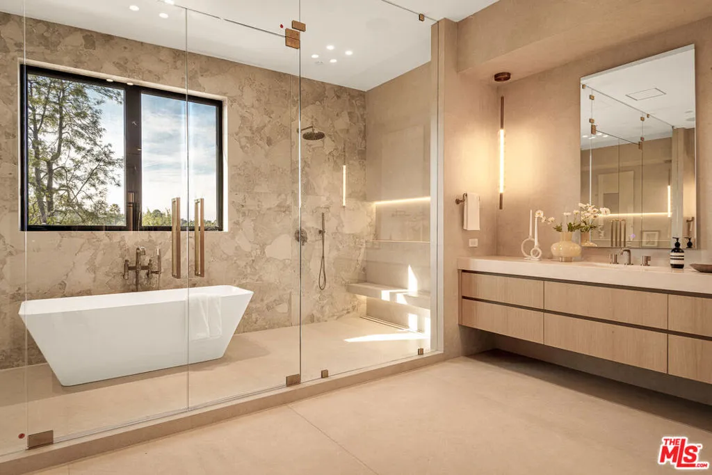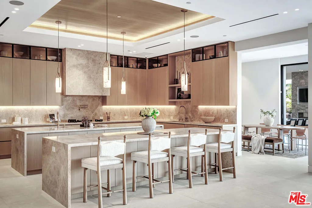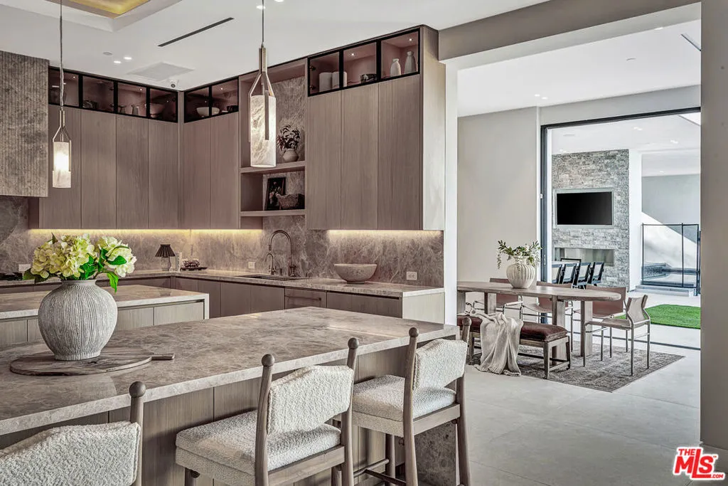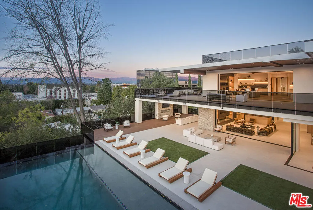 Nestled within one of Encino’s most coveted hillside enclaves, The Crown Jewel. This exceptional new-construction gated estate is set behind a long private driveway, offering unparalleled privacy, security, and prestige. Thoughtfully designed for elevated living and grand-scale entertaining, the residence spans approximately 10,200 square feet of impeccably curated interiors, complemented by over 6,000 square feet of expansive outdoor balconies spaces. A luxurious primary suite with private terrace, spa-like bath, and serene views serves as a tranquil retreat, while a rooftop deck crowns the estate, creating an elevated setting for entertaining and relaxation. The home features a refined office, private movie theater, formal living and dining rooms, a stunning main kitchen with an adjacent chef’s prep kitchen, elevator access to all levels, a fully equipped gym with mirrored walls and Pilates barre, and a resort-style sauna. An exceptional entertainer’s backyard completes the property, highlighted by a striking infinity pool with waterfall and spa, seamlessly embracing the California indoor-outdoor lifestyle. Additional amenities include EV charging, ample driveway parking, and a private hillside setting with commanding elevation and tranquil surroundings.