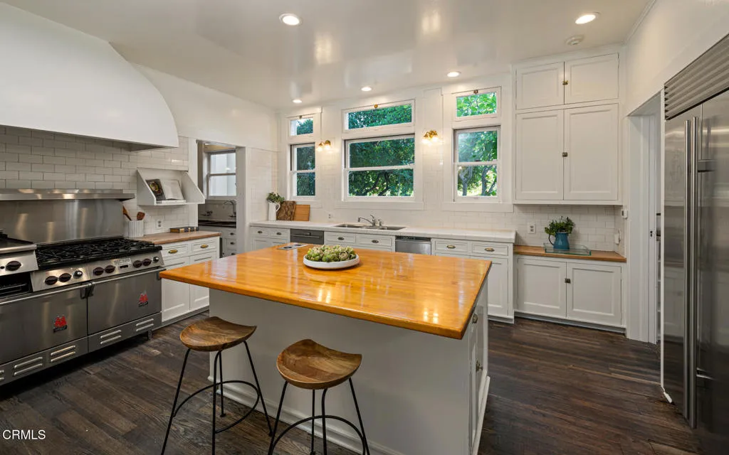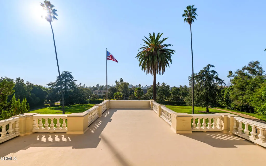 //Charles A Goodyear House, ‘Knollcrest’ by G. Lawrence Stimson, 1913// Built in 1913 for lumber baron Charles Goodyear and his wife, Henrietta, Knollcrest occupies 2.5 acres (Lots 18 and 19) within the original Oak Knoll subdivision. Widely regarded as one of the finest homesites in the development, its commanding position atop a gentle knoll–overlooking a sweeping front lawn–earned the estate its enduring name. //The residence was designed by prominent architect G. Lawrence Stimson, best known for the Wrigley Mansion. It is said that Goodyear commissioned the home, in part, to incorporate his extensive collection of custom-made furnishings and artifacts, resulting in a structure conceived to be entirely fireproof. Original wrought-iron gates frame the estate’s 330′ frontage along Oakland Ave, connected by a circular drive culminating in a porte-cochere. A rare secondary driveway, running N/S with automatic gate, is accessed via Allendale Rd. //True to Stimson’s architectural language, the main residence features stately mahogany-paneled public rooms w/10′ ceilings, upper-level bedrooms w/9′ ceilings, hand-carved moldings, marble flooring and staircase, and living room w/restored Caucasian walnut floors accented by ebony inlay. Remarkably, much of the original woodwork and artisan-crafted built-ins remain intact and in exceptional condition. Living space spans three levels, with additional attic area above. //A secondary structure–recently updated w/full kitchen and BA–serves as a guest house, adjacent to garage w/BA, and pool. In total, Knollcrest comprises 8,713 sf of living space across all structures, complemented by an additional 5,087 sf of garage/storage space. //Following the Goodyears, the estate was stewarded by a succession of prominent families, including U.S. Steel president Thomas Cole and department store scion and philanthropist Samuel Robinson, before being acquired by the current owner in 1966. In 1968, Knollcrest was selected as the 4th Pasadena Showcase House and has since served as the backdrop for numerous motion pictures. //Defined by its rich history, architectural pedigree, prominent setting, and intact original acreage, Knollcrest stands among Pasadena’s landmark estates. Offered for the first time in six decades, it represents a rare opportunity to steward a significant Los Angeles family estate for generations to come.