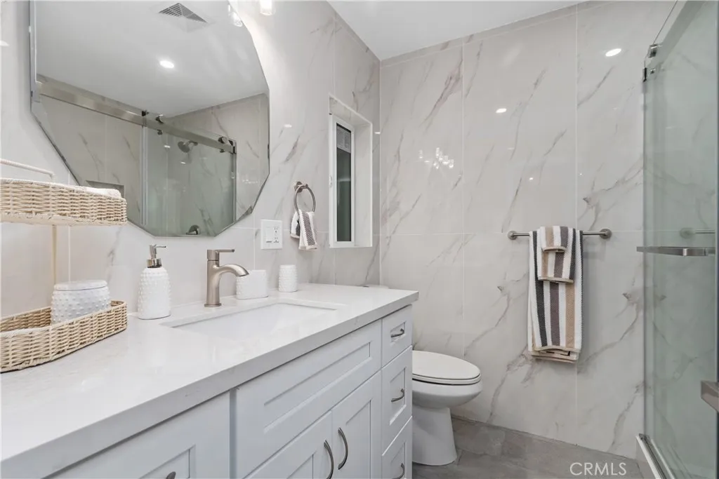 COMPELLING PRICE! This Anaheim SINGLE STORY three bedroom , two bathroom home has been thoughtfully renovated, including new flooring, paint, fixtures, major appliances, lighting, and room decor. As you enter the home, you are invited into the living room space that exudes style. The open floor plan adds warmth and charm to the space. New windows add natural light and energy efficiency, while insulation throughout ensures optimal comfort year-round. The stylish decor creates a cohesive and elevated atmosphere. The kitchen has been transformed with new custom designer contemperary finishes, new cabinetry, and sleek appliances, perfect for cooking and entertaining. Each bathroom features custom new glass shower doors, hardware, mirrors with integrated lighting, sink and toilets. The bedrooms have been upgraded with fresh paint, and new flooring, offering a peaceful and stylish retreat. The living room exudes an open feel with custom big windows and new flooring that adds warmth and charm to the space, making it perfect for both relaxing and entertaining. The garage is upgraded with epoxy flooring. For Peace of mind this home offers new plumbing, new sewer line, and newer electrical system. the backyard provides a serene space for private enjoyment. This detached home offers the ultimate in comfort, style, and modern living. Welcome home!