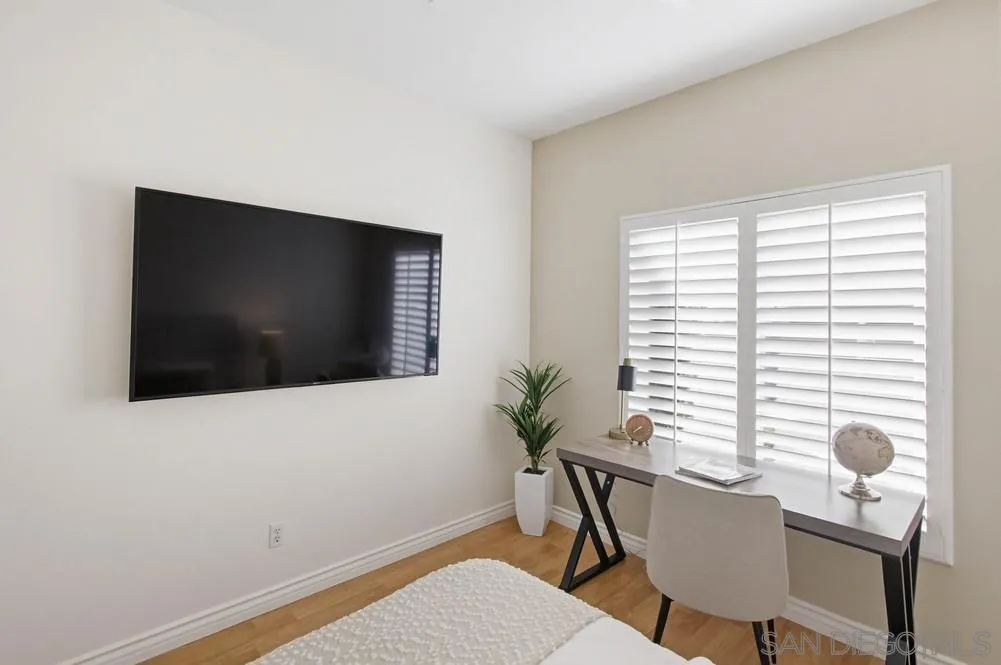 Welcome to this beautifully enhanced, single-level residence that blends thoughtful upgrades with timeless design in one of Carmel Mountain Ranch’s most established neighborhoods of Walden. Offering 1,533 square feet of well-balanced living space, this three-bedroom, two-bath home has been meaningfully improved to elevate both comfort and functionality. The remodeled bathrooms feature maple cabinetry and quartz counter-tops, while the living area is anchored by a custom-built entertainment center with integrated storage and a new mantel with a remote-controlled gas fireplace insert—creating a refined yet inviting focal point. Designer wood plantation shutters, Belgian flax linen curtains, and fresh neutral interior paint contribute to a cohesive, move-in-ready aesthetic throughout. Practical upgrades include a Trane HVAC system with smart thermostat, energy-efficient Milgard windows and doors, and a Ring security system with cameras, delivering modern efficiency and peace of mind. Set on a low-maintenance lot with a two-car garage, the home offers long-term stability within an elite, highly regarded Poway Unified School District. Quietly positioned on an interior street featuring panoramic mountain views to the east and surrounded by pride of ownership, this property presents a rare opportunity for buyers seeking a turnkey home with quality improvements already in place and enduring value in a consistently high-demand community. Don’t miss this one!