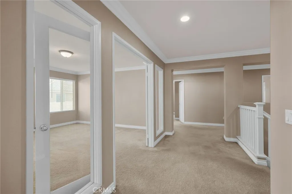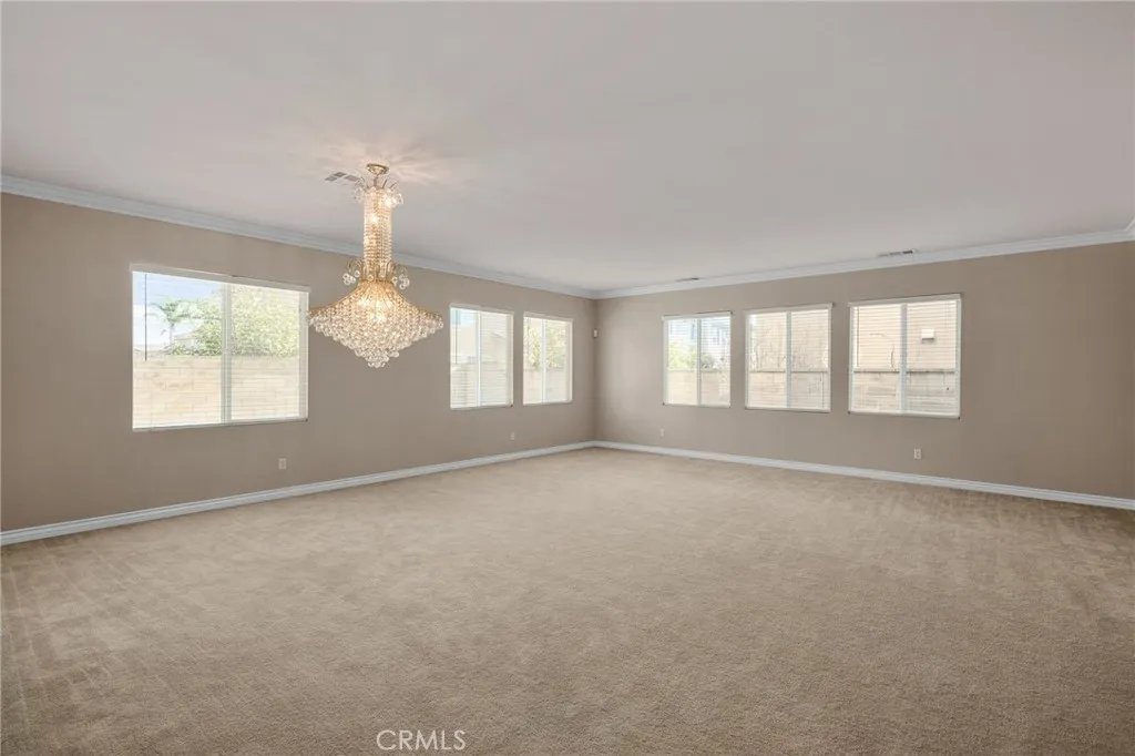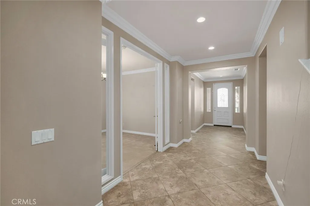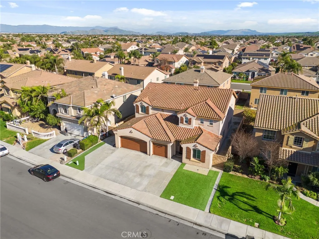Discover the perfect balance of space, elegance, and functionality in this meticulously maintained residence located in one of Eastvale’s most desirable neighborhoods. This two story home offers 5 bedrooms with multiple office and bonus spaces on both levels, providing the potential to easily have a 7 bedroom layout, a three-car garage, ideal for large or multigenerational households, remote work, or flexible living needs. From the moment you enter, you’re greeted by high ceilings, crown molding, recessed lighting, plantation shutters, and a custom imported Italian crystal chandelier, creating a refined and welcoming atmosphere. The open-concept layout seamlessly connects the formal living and dining rooms to a spacious family room with fireplace and media niche, perfect for entertaining or everyday living. The chef’s kitchen features solid surface countertops, a large center island, built-in gas cooktop, double ovens, above-range microwave, dishwasher, walk-in pantry, and a bright breakfast nook that opens to the family room. The first floor includes a full bedroom and bathroom, ideal for guests or multigenerational living, along with a private office or study with glass French doors that can also function as a flex room or additional bedroom, plus a half bath for guests. Upstairs truly has it all, highlighted by the luxurious primary suite, featuring double-door entry, an oversized en-suite bathroom with dual vanities and jacuzzi tub, a spacious walk-in closet, and a private balcony with mountain views. The upper level also includes large secondary bedrooms, a built-in study/office niche, and a huge enclosed office or bonus room with French doors, offering flexibility for work, play, or additional bedrooms. A dedicated upstairs laundry room with cabinetry and sink adds everyday convenience. Outside, enjoy a private backyard retreat complete with a covered patio, concrete hardscape, and low-maintenance landscaping, while the front yard features artificial turf for easy upkeep. Additional highlights include central HVAC and ample storage. Perfectly positioned near parks, shopping, top-rated schools, and commuter routes, this exceptional home offers size, versatility, views, and location, a rare opportunity in the heart of Eastvale. Walking distance to James C. Huber Park, award-winning Eastvale schools, and minutes from major shopping destinations including the new Walmart Supercenter, Sprouts, and surrounding retail centers. No HOA and no solar.