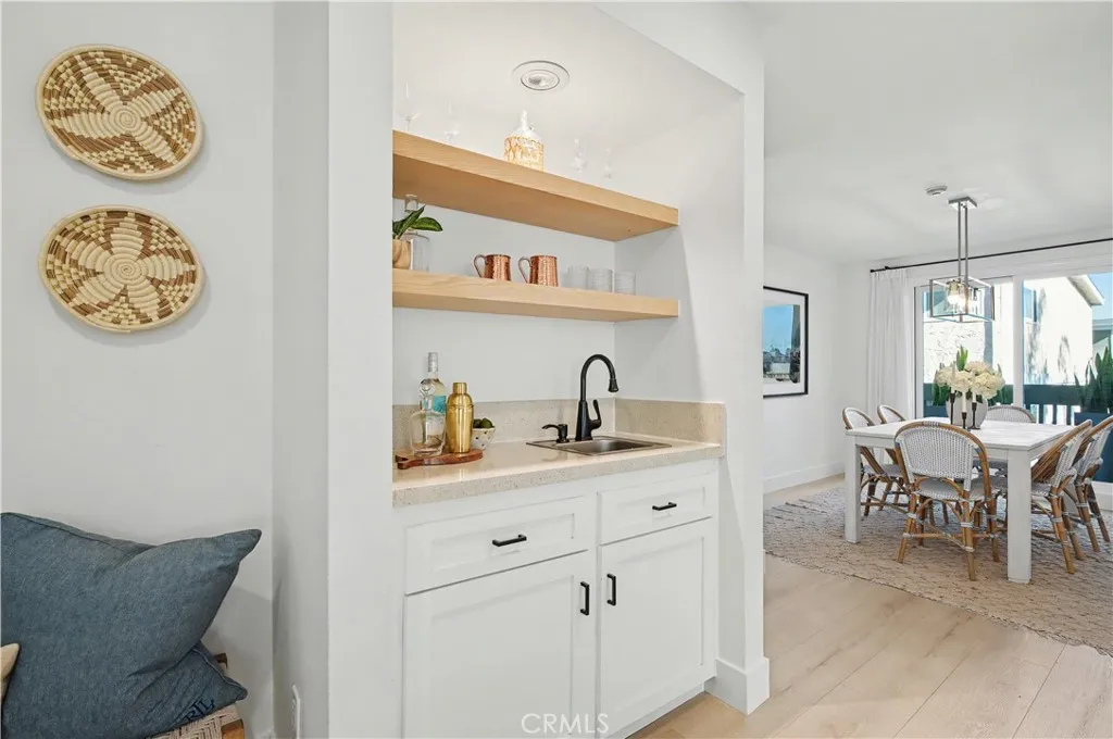 The interior has been beautifully upgraded with brand new flooring throughout, recessed lighting, and two newly updated bathrooms featuring luxurious finishes. The main level provides a seamless flow between the kitchen, dining, living areas, and is complemented by a stunning guest bathroom. The chef’s kitchen is outfitted with quartz counters, white shaker cabinetry, soft close drawers, and stainless steel appliances. For additional outdoor enjoyment, a private terrace off the dining room overlooks the community pool and spa.