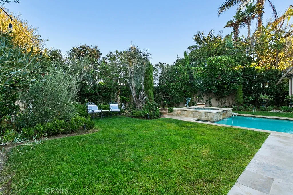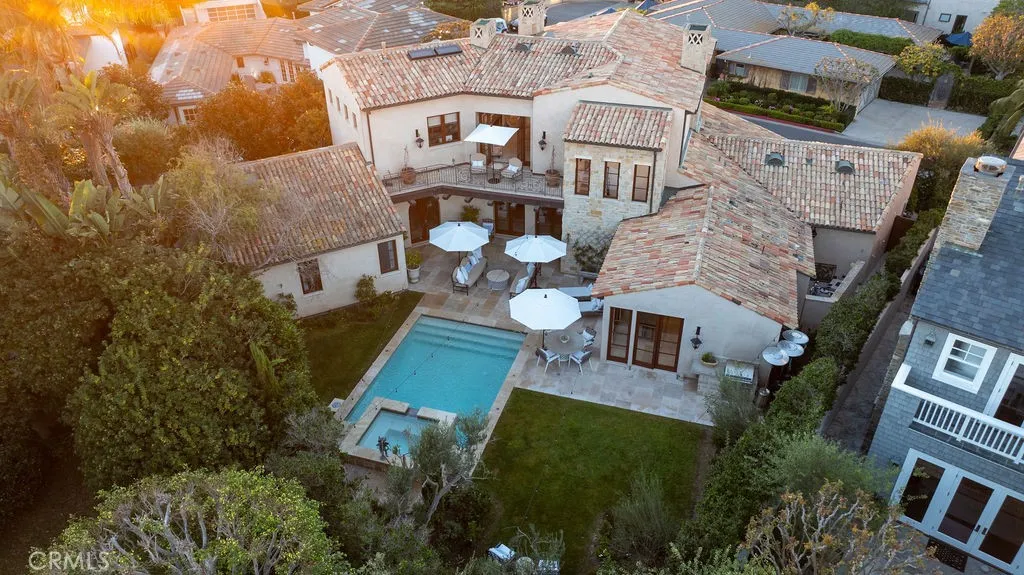 Outside, a private resort-style retreat awaits. A sparkling pool and serene spa anchor the outdoor living experience, creating an idyllic backdrop for sun-soaked days, sunset cocktails, and starlit nights. Set on an approximately 9,990-square-foot lot, the grounds offer ample space for entertaining, relaxation, and enjoying the ocean air.