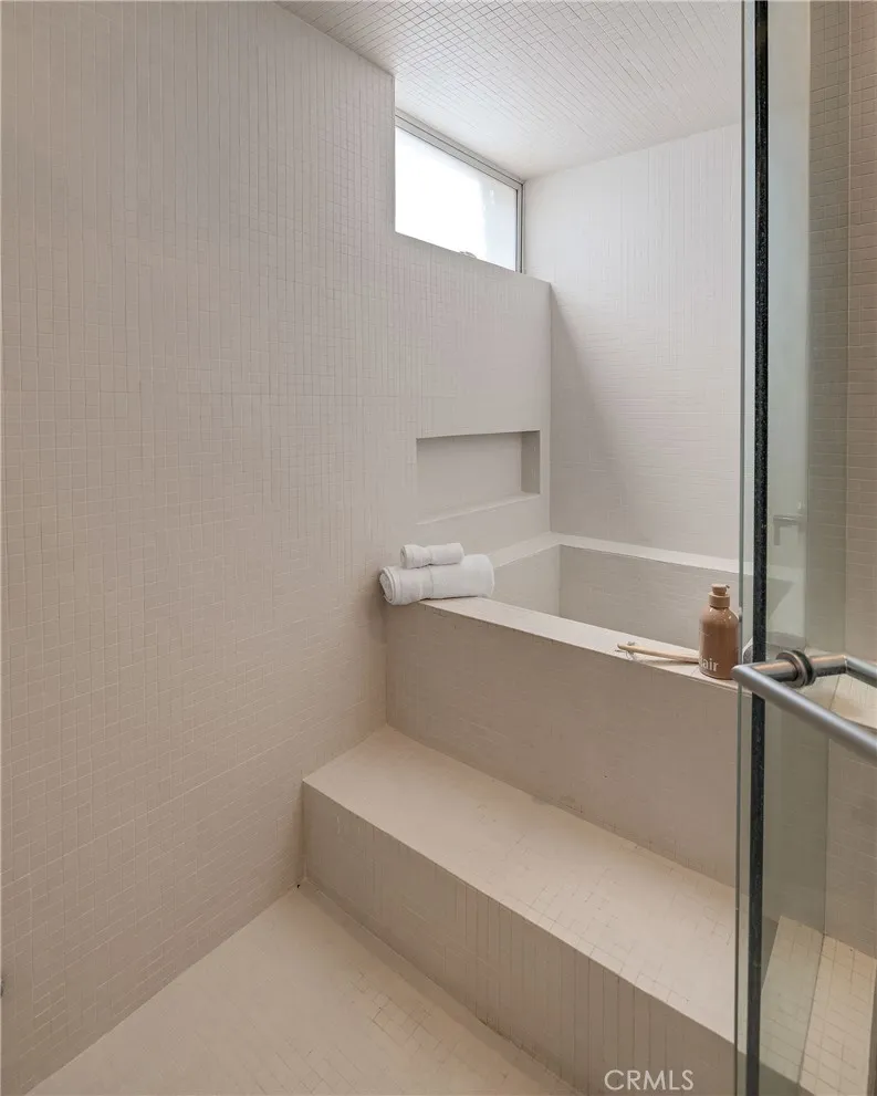 The adjacent 660 sq ft Marmol Radziner Rincon 5 guest house is a minimalist gem that promotes indoor-outdoor living with glass walls and oversized sliding doors. It features sleek cabinetry, European appliances, a private bedroom with a Heath Ceramics-lined bathroom, and opens to a private poolside area with a firepit, fountain, and jacuzzi. Rates subject to change
