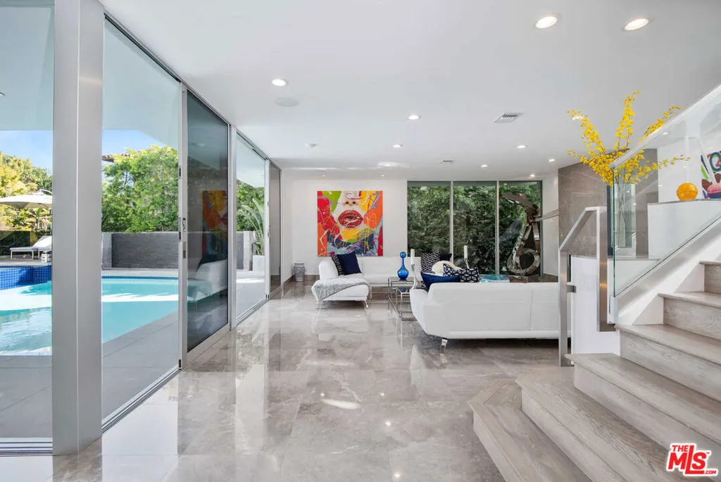 Experience the epitome of luxurious living, nestled adjacent to some of the wealthiest individuals in the world amidst a prestigious enclave that includes Beverly Hills and Holmby Hills. This exquisitely designer-furnished, contemporary residence is a remarkable architectural triumph that rises gracefully above the city lights, offering breathtaking panoramic views. This opulent masterpiece features expansive living spaces with unparalleled finishes, all thoughtfully designed for seamless entertaining. The open floor plan boasts soaring ceilings and expansive sliding glass walls that integrate indoor and outdoor spaces. This leads to resort-style amenities, including a magnificent pool, spa, and multiple entertainers’ terraces embellished with cascading waterfalls. A grand great room, anchored by a sophisticated fireplace, transitions effortlessly to a fully equipped bar complete with top-of-the-line temperature-controlled wine storage. This space flows into a stunning dining room and a state-of-the-art chef’s kitchen, outfitted with Miele appliances and Poggenpohl cabinetry, perfect for culinary enthusiasts. The lavish primary suite offers a private terrace with captivating views, extensive showroom-quality closets, and exquisite dual bathrooms. This extraordinary high-tech smart home retreat includes three generously sized VIP guest suites, a cutting-edge media room with sweeping vistas, and a fully equipped gym featuring a dry sauna.OPTION TO BUY WITH SELLER FINANCING AVAILABLE.