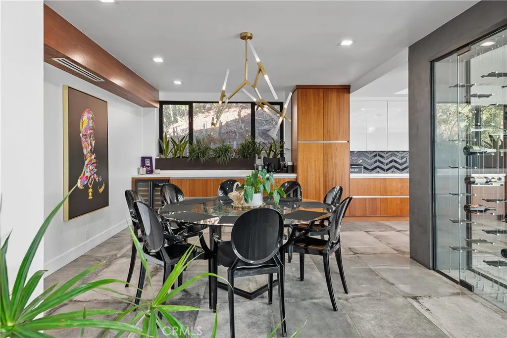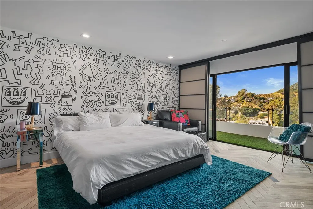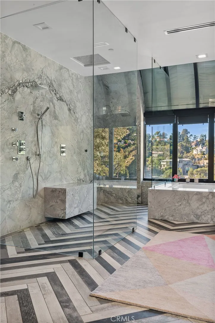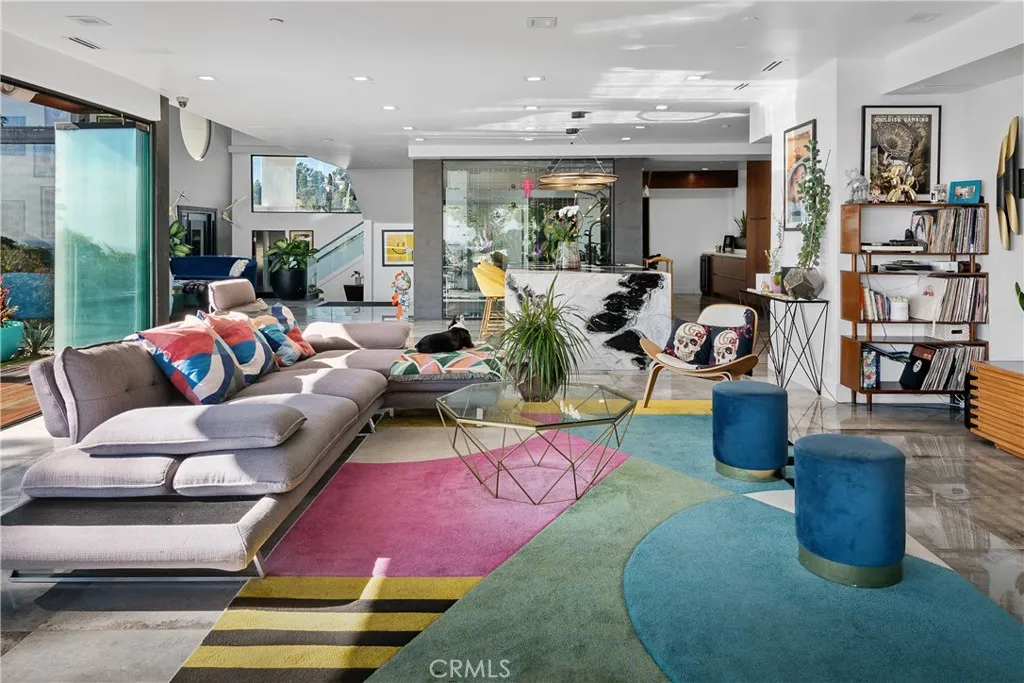 Step inside, and you’ll be immediately captivated by the fantastic energy that permeates every corner of this house. Its custom-designed modern patio and expansive glass front facade create an immersive experience, making you feel as though you’re ensconced in a luxurious fishbowl, all while marveling at some of the most stunning vistas the Hollywood Hills have to offer.