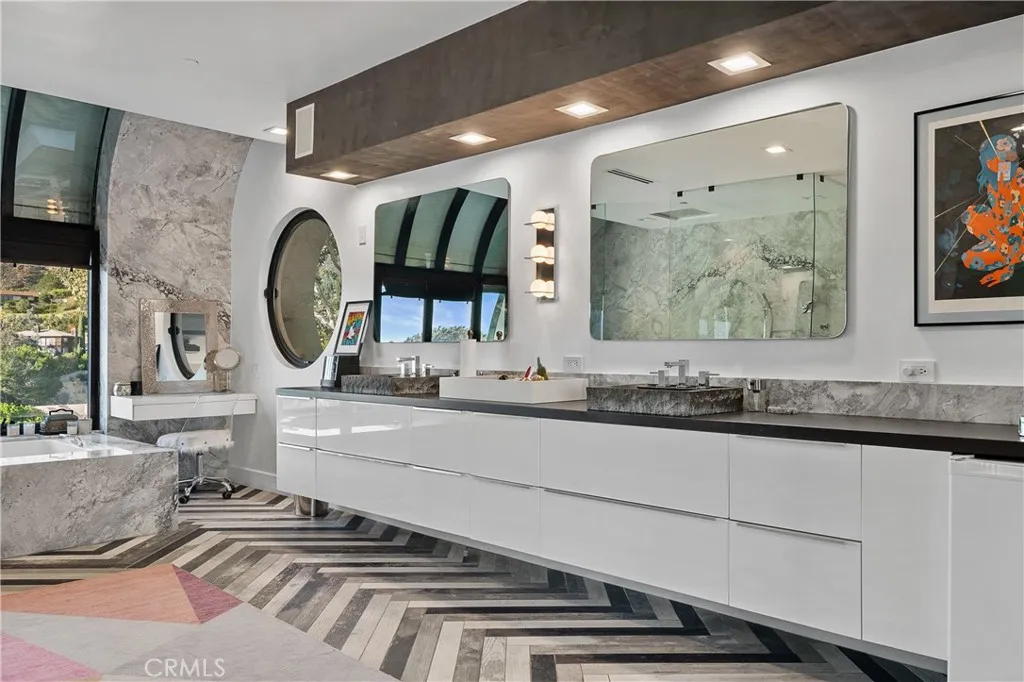 Situated in Beachwood Canyon, in close proximity to Hollywood’s most legendary landmarks, including the iconic Hollywood sign and the famed Batcave featured in the original Batman series of 1956, this residence offers an unparalleled blend of accessibility and Hollywood charm.