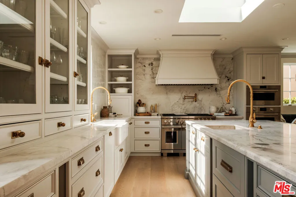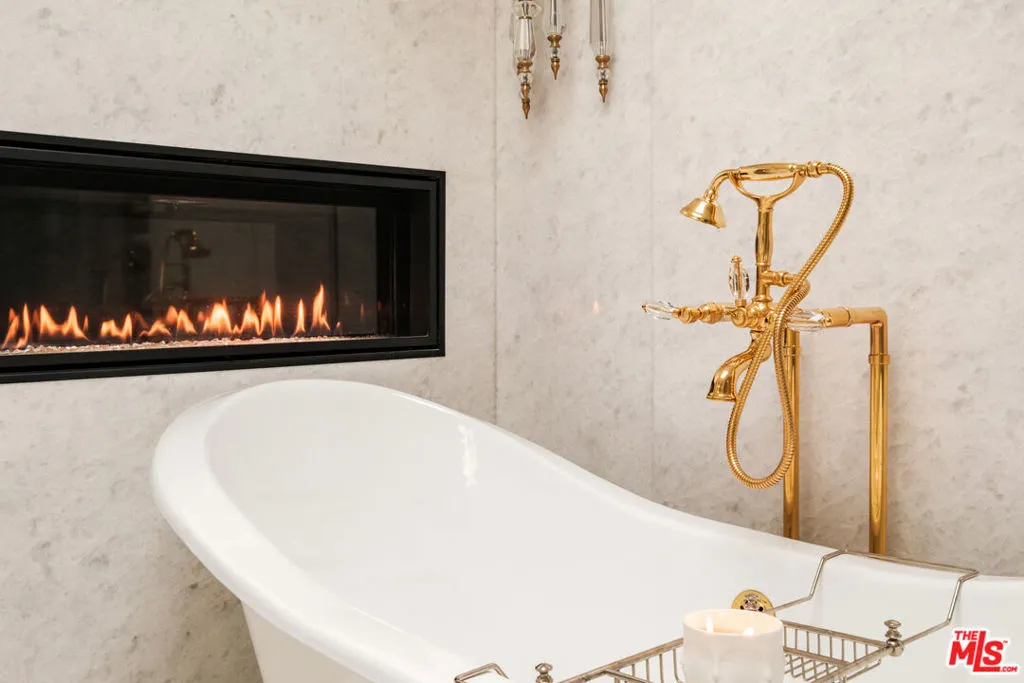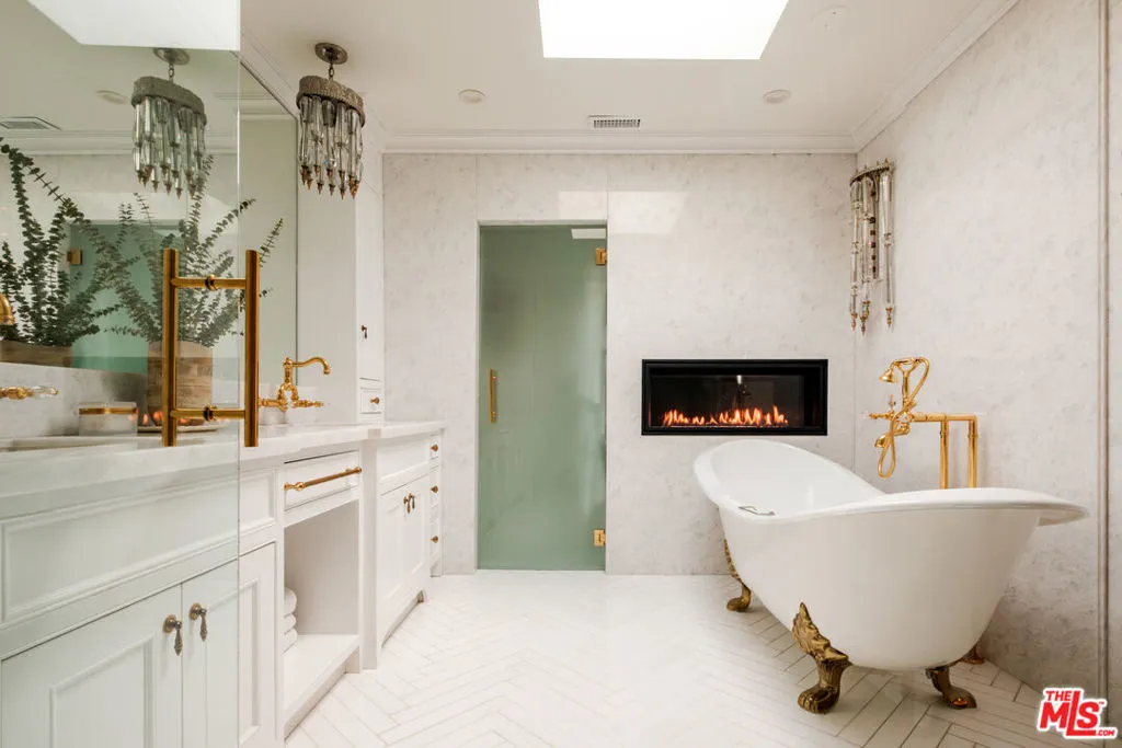 An Iconic French Regency Estate in the Hills of Tarzana! Can be rented Fully Furnished. High above the valley floor where the city lights shimmer like scattered diamonds, this enchanting near 6,000 sq ft French Regency estate awaits rich with history, wrapped in elegance, and crafted for those who savor life’s most beautiful moments. A home not merely lived in, but loved. Inside, every detail speaks of artistry. The chef-inspired kitchen is a place where memories are made, an Italian marble clad masterpiece with professional Wolf appliances, a secret walk-in pantry, a generous center island, and a sunlit breakfast nook that invites lingering over morning coffee as the world awakens below. A hidden door of vintage brass once belonging to the Academy ushers you into the estate’s private theatre, where the charm of Old Hollywood is reborn. Velvet shadows, a glowing bar, and nostalgic Nick Alain lighting create the perfect stage for evenings of laughter, stories, and film. The primary suite is a sanctuary of warmth and wonder. A private den and flickering marble fireplace set the tone for quiet nights in. A handsome office offers its own marble hearth ideal for inspiration to find you. Two bespoke dressing closets guide you into a spa-like haven where a pedestal tub with fireplace and professional grade double steam room shower with blu tooth, red light and eucalyptus inviting indulgent escapes. Wake each morning to the sun kissing the mountains, lose yourself in the romance of endless valley views. The heart of the home beats through its grand spaces, a dining room made for candlelit celebrations, a great room with soaring ceilings and French doors that open to the sky, and a welcoming family room where yet another fireplace dances in the evening glow. Outside, the magic continues. Wander through lush, private grounds. Share unforgettable feasts prepared in the outdoor kitchen and bar with multiple grills and stone pizza oven. Swim beneath sunlit skies or gather at the fire pit beneath the stars as the valley stretches out like a painted backdrop. This is more than an estate. It is a place where legends linger. Where beauty stands still. Where every day feels like a page from a timeless love story. Welcome home.