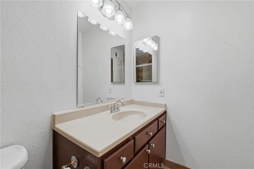 The dining area opens to a patio through sliding glass doors, perfect for outdoor dining or relaxing in the yard. Both bathrooms are fully tiled, including the primary shower, offering a clean and timeless look.