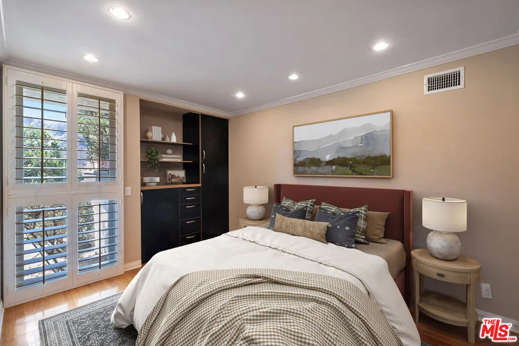 Located on peaceful Palisades Circle, this 2 BED w/a BONUS ROOM/OFFICE is a RARE CORNER UNIT. The open and airy 3-level end-unit townhouse spans 2,086 square feet of thoughtfully designed living space. You’ll love the high vaulted ceilings in the kitchen as well as in the primary bedroom. There are beautiful views from every room, hardwood floors, and classic wood stairs and banisters. The wood-burning fireplaces in the living room and primary bedroom are perfect for creating a cozy ambiance. Outdoor areas include a patio and 2 balconies with an ocean view from the upstairs balcony. Enjoy the convenience of a large direct entry 2 car garage, lots of cabinet space, laundry room, and cedar closet. The complex offers exceptional amenities, including a gym, pool, sauna, and tennis court for an active lifestyle. This sweet little community in the Palisades Highlands is surrounded by Topanga State Park hiking trails. Don’t miss the opportunity to make this stunning unit in a great area and complex yours! Some photos have been digitally enhanced/virtually staged.