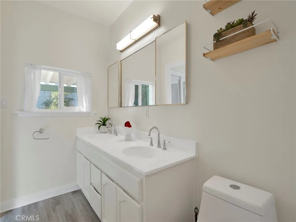 Together, the property offers 5 bedrooms, 3 bathrooms, and 1,926 sq ft of total living space. The main residence spans 1,486 sq ft and includes 4 bedrooms and 2 bathrooms with a thoughtfully designed layout that balances comfort and functionality. Recent improvements include fresh interior paint, new luxury vinyl plank flooring, a remodeled primary bathroom shower, a new HVAC system, a new roof, and a newer sewer line. Light-filled living and entertaining spaces create a warm, inviting atmosphere throughout. Step outside to a lush and private rear yard featuring a large covered patio, manicured lawn, mature landscaping, and a generous gated side yard—perfect for storage, gardening, or additional outdoor flexibility. Adding exceptional value is the fully permitted ADU completed in 2023. This beautifully designed 1-bedroom, 1-bath residence offers 440 sq ft of living space with vaulted ceilings, abundant natural light, and a full kitchen with stackable washer and dryer. The ADU also includes a cozy living area, a spacious ensuite bedroom, mini-split heating and cooling, separate electric meter, private front entrance and patio, and a gated side yard—providing privacy and independence for occupants. Additional highlights include freshly painted exteriors, separate 200-amp electrical panels for both residences, and a truly turnkey setup for the next owner. Located in a well-established community near the Knollwood Country Club & Golf Course, residents enjoy access to highly regarded schools, nearby shopping and dining, parks, scenic hiking trails, and convenient freeway access. This rare gem delivers flexibility, long-term value, and lifestyle—an opportunity not to be missed.