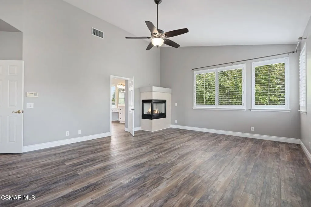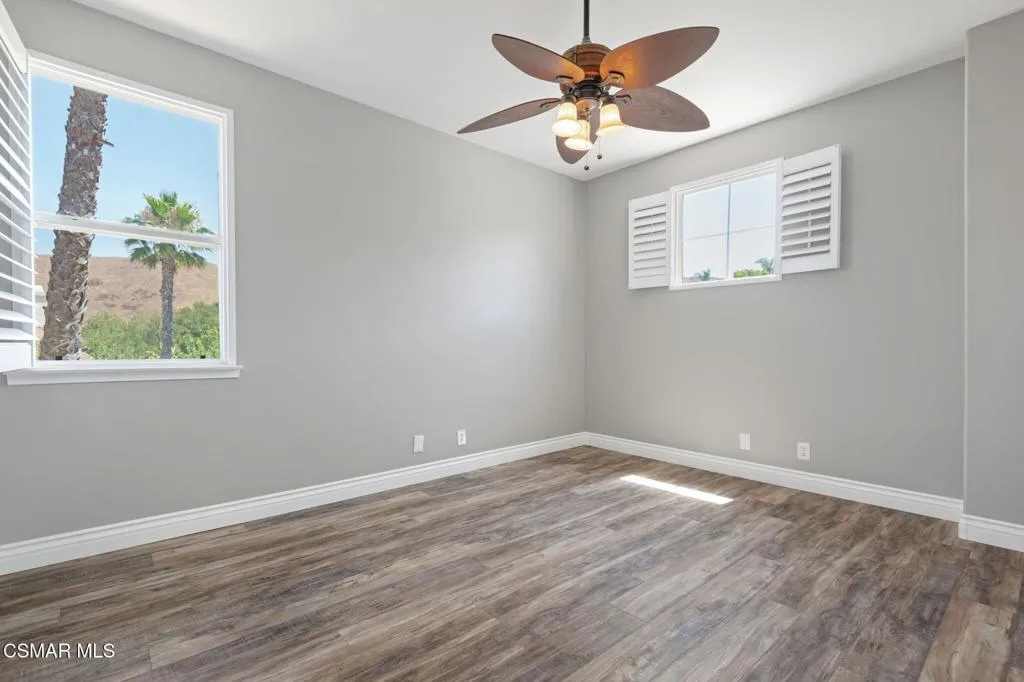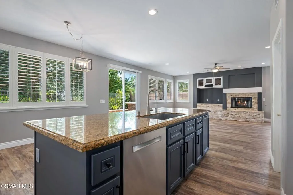 Ideally positioned within the desirable Wood Ranch community, this thoughtfully upgraded residence offers five bedrooms, four bathrooms, and approximately 3,639 square feet of inviting living space designed for both everyday comfort and effortless entertaining. Surrounded by nearby trails, parks, golf, and local amenities, the home blends an ideal location with a refined yet relaxed lifestyle.A welcoming entry with soaring ceilings sets the tone, opening to light-filled formal living and dining spaces well-suited for hosting. At the heart of the home, the chef’s kitchen is equipped with Bosch appliances, a Sub-Zero freezer, granite countertops, a center island with seating, and a walk-in pantry. The kitchen flows seamlessly into the family room, where a fireplace and custom built-ins create a warm, functional gathering space.The primary suite serves as a private retreat, complete with its own fireplace, generous walk-in closet, and a peaceful balcony. An adjoining bonus room offers versatility as a home office, fitness space, nursery, or reading lounge. The ensuite bath features dual vanities, a soaking tub, and an oversized walk-in shower for a spa-like experience.Upstairs, three additional bedrooms provide comfortable accommodations, including one with a private ensuite and two connected by a Jack-and-Jill bath. Each bedroom offers ceiling fans, ample closet space, and abundant natural light. Plantation shutters and dual-zone air conditioning enhance comfort throughout the home.The backyard is designed for enjoyment year-round, featuring a newer built-in BBQ island with sink and refrigerator, stamped-concrete patio, and a plunge spa accented by a waterfall feature. Mature landscaping provides seasonal privacy, while winter months reveal scenic northern mountain views–perfect for both entertaining and quiet relaxation.The main level includes a well-positioned bedroom and full bathroom ideal for guests or multi-generational living, along with a dedicated laundry room featuring a sink and additional storage. Hardwood flooring runs throughout the home, and a three-car garage with built-in cabinetry offers excellent organization and storage.This prime setting is just minutes from Wood Ranch Golf Club for golf, dining, and social events, as well as Rancho Madera Community Park with tennis and basketball courts, playgrounds, picnic areas, and expansive green space. The property is conveniently located near the highly regarded Wood Ranch Elementary School and the iconic Ronald Reagan Presidential Library. Residents enjoy access to miles of scenic hiking and biking trails, a community pool and spa for relaxation and recreation, and the added peace of mind of 24-hour security–delivering a compelling blend of elegance, comfort, and the best of Wood Ranch living.