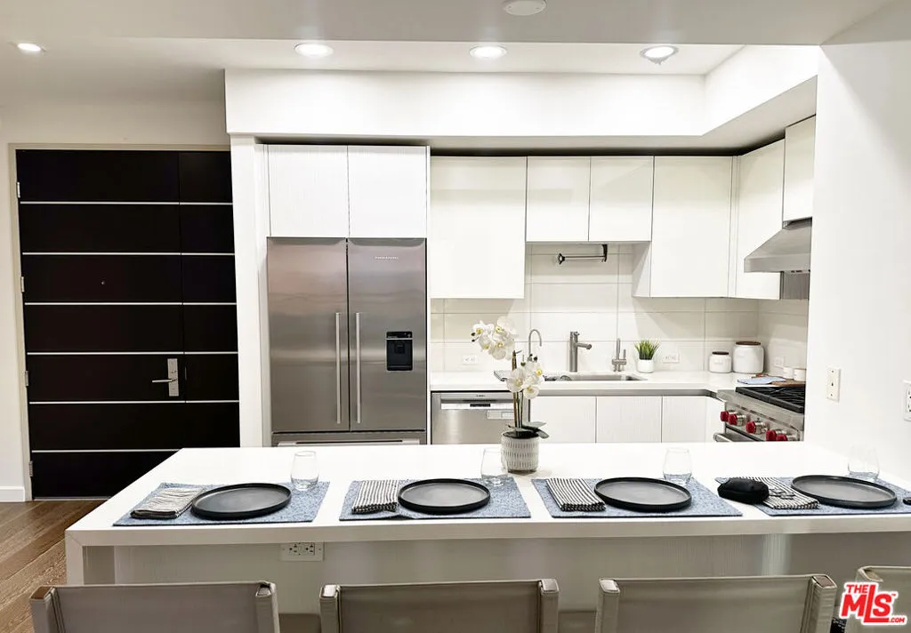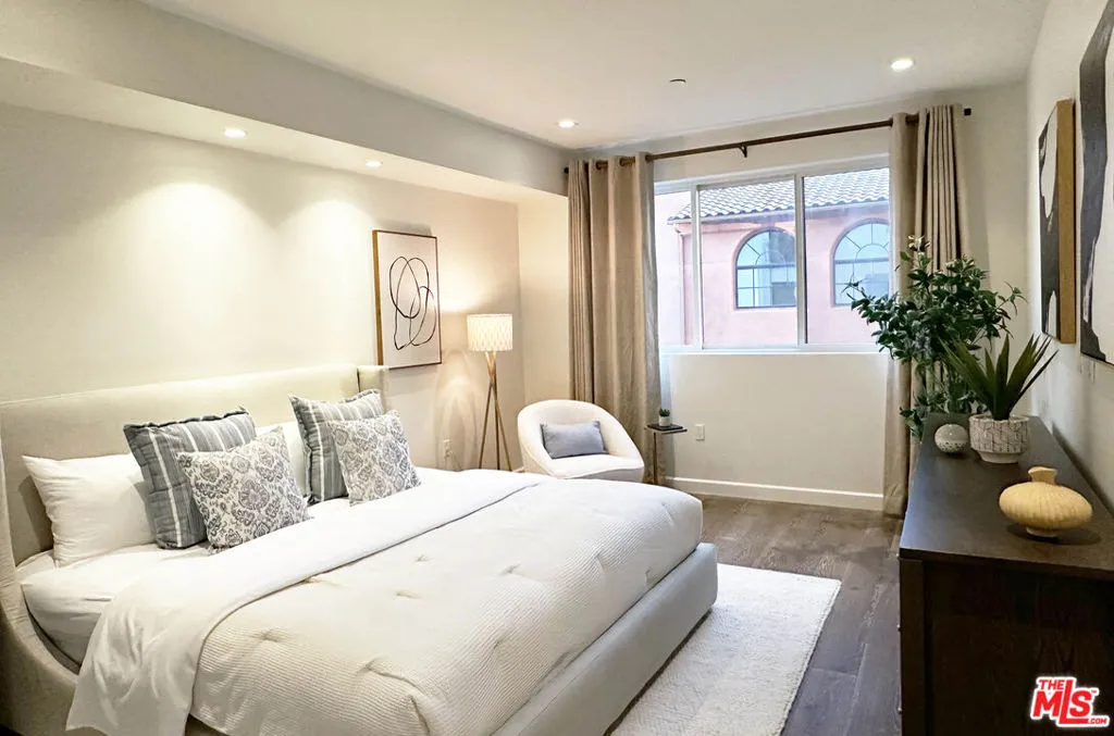 Situated on the second floor of The Cosmopolitan Brentwood, this 2-bedroom, 2.5-bath residence offers a sophisticated blend of quality, comfort, and elevated services in one of Brentwood’s rare premier full-service buildings. The open living and dining area is finished with wide-plank wood floors and clean, contemporary details as well as a guest bathroom. The well-appointed kitchen features Fisher & Paykel and Bosch appliances, a Wolf range/oven, sleek cabinetry, and generous workspace. Both bedrooms include en-suite baths, with the primary suite offering dual vanities and a walk-in closet. Additional highlights include in-unit laundry, secure 2 car tandem parking and private storage. Residents enjoy a comprehensive amenity collection, including 24/7 concierge and security service, controlled access, a modern fitness center, outdoor lounge with fire pit, meditation garden, EV charging, and ample guest parking. Positioned within moments of Brentwood’s acclaimed dining, cafes, grocery stores, boutique fitness studios, parks and Brentwood Village, this home delivers refined living in an exceptionally convenient Westside setting.