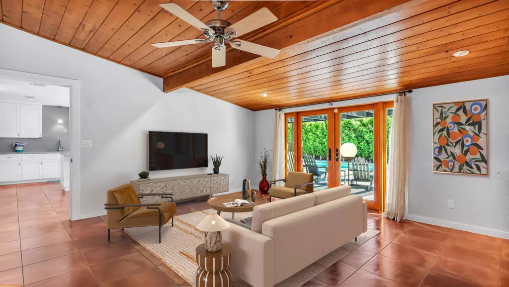 Tucked behind private gates and lush greenery in Tahquitz River Estates, this beautifully maintained 3-bedroom, 3-bathroom home offers nearly 2,000 square feet of seamless indoor/outdoor living. Sunlight fills the open floor plan, which features spacious living and dining areas, a well-equipped kitchen, and thoughtful updates that blend classic Palm Springs charm with modern finishes. Each bedroom is paired with an attached bathroom, providing a private and practical layout for residents and guests. Step outside to your backyard oasis, where a large updated pool and spa create a resort-like retreat, surrounded by mature landscaping, multiple seating areas, and clear views of Mount San Jacinto. Designed for both relaxation and entertaining, the space combines serenity with private seclusion. Sitting on fee land (you own it) with no HOA, this home places you just minutes from the vibrant heart of Palm Springs, with its renowned restaurants, boutique shops, galleries, and entertainment at your doorstep. Ideal as a full-time residence, weekend getaway, or high-demand vacation rental. (As of December 18, 2025, Tahquitz River Estates is well below the 20% vacation rental cap, further enhancing its appeal.) Experience the ultimate Palm Springs lifestyle, combining comfort, style, and unmatched views in this private desert retreat.