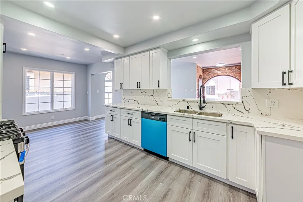 Situated in/around the highly desirable View Park–Windsor Hills neighborhood, this move-in ready home is just minutes from SoFi Stadium and Downtown LA. The home’s charming exterior features a welcoming front porch and a private side patio adorned with classic red brick. Step inside to a fully renovated interior with brand-new flooring, new central AC, new tankless water heater and new roof. The living room showcases a striking floor-to-ceiling original red brick fireplace. The modern kitchen is a chef’s dream, boasting quartz countertops, brand-new stainless-steel appliances, and an open-concept layout that flows seamlessly into a large family room—ideal for entertaining and family gatherings. The first floor offers a versatile layout with bedrooms and a full bath—perfect for guests, a home office, or multigenerational living. Additional rooms provide flexibility for extra bedrooms, a gym, or a home office. Upstairs, the master bedroom features a spacious ensuite bathroom. 2 additional generously sized bedrooms also offer walk-in closets, and the upstairs common bathroom has been fully remodeled with a dual-sink vanity and modern finishes. Outside, a remote-controlled
