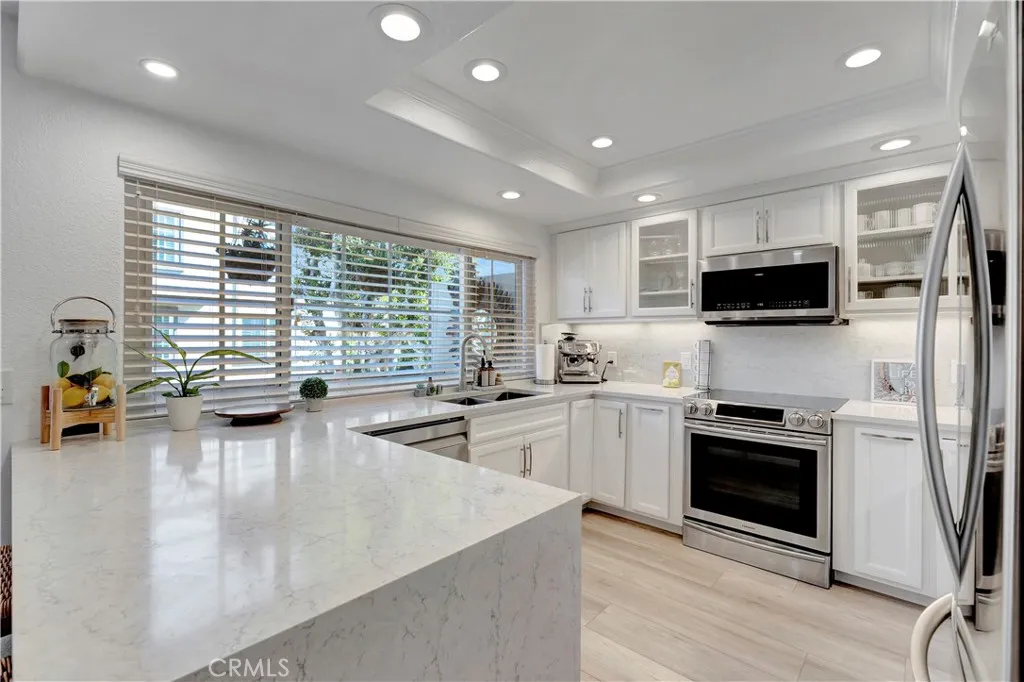 Light-filled and beautifully positioned near the ocean, this home enjoys a prime interior location with greenbelt views in the coveted SeaCliff on the Greens community, offering a serene coastal lifestyle moments from the beach. Upgrades include recessed lighting, upgraded hard surface flooring, brand new AC, custom paint, custom light fixtures, plantation shutters, updated windows and sliders and so much more. The living room showcases a floor-to-ceiling stone fireplace and custom windows & slider. Just off the kitchen, a cozy family room with a built-in desk opens to a partially enclosed balcony for added space (this property has one of only 2 sunrooms in the entire community). Gourmet kitchen with stunning waterfall quartz counters, white shaker cabinets, breakfast bar, and stainless steel appliances. Grand primary suite with vaulted ceilings, dual walk-in closets with organizers & view balcony. The primary bath has been tastefully remodeled with shaker cabinets, quartz counters, dual sinks, a spa tub, and a walk-in shower. Ample size secondary bedrooms and conveniently located upstairs laundry area. Direct garage access with tons of storage. Beautiful sunny front patio with newly installed pavers and custom landscaping lighting facing the greenbelt. 2-minute walk to several community pools, spas, and clubhouse. Steps to the beach, the trails at the Bolsa Chica Wetlands, fabulous parks and located within the award-winning SeaCliff Elementary School. A truly unique community!