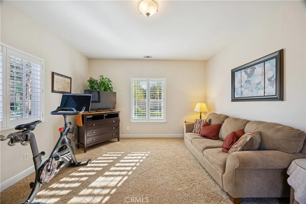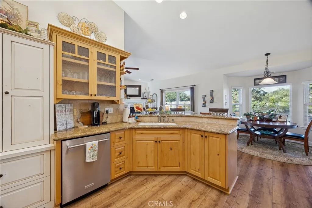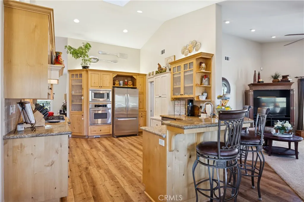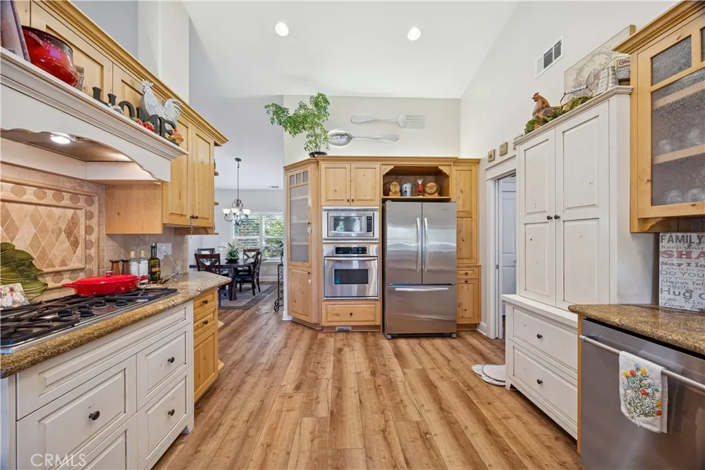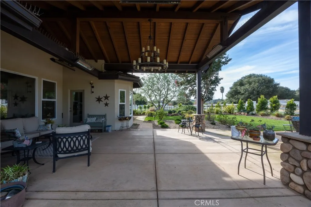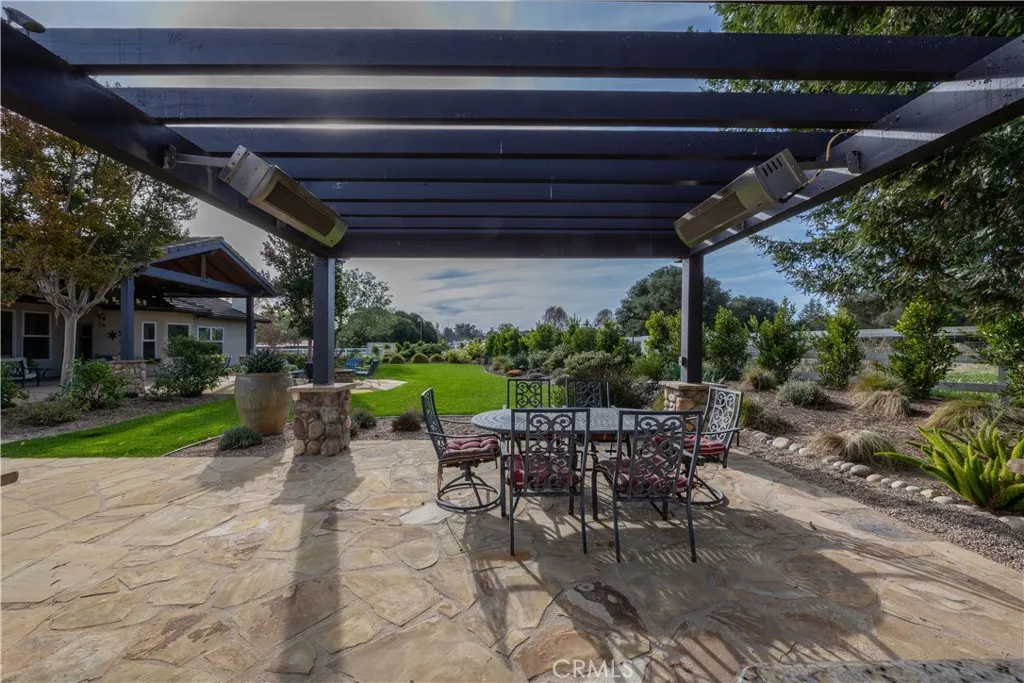 Set on a generous and fully usable 1.01-acre lot, this meticulously maintained 3-bedroom plus den (optional 4th bedroom), 2.5-bath home offers 2,657 square feet of comfortable living paired with exceptional indoor-outdoor amenities. Luxury vinyl plank flooring flows throughout most of the living spaces, beginning in the formal living room where views extend to the covered patio and lush backyard beyond. The dining room flows effortlessly into the well-appointed kitchen with breakfast bar, overlooking the family room and its cozy fireplace. From the breakfast nook, direct access to the covered patio creates a seamless transition for indoor-outdoor living, casual dining, and entertaining. The expansive covered patio is designed for year-round enjoyment, featuring five electric heaters, while the outdoor kitchen is fully equipped with a built-in BBQ, Santa Maria–style grill, refrigerator, two-burner cooktop, and gas heaters to provide warmth while dining al fresco. The home is pre-wired for outdoor surround sound and central vacuum, offering future-ready convenience. Just off the kitchen is the laundry area and a conveniently located powder room. The spacious primary suite serves as a private retreat, featuring a luxurious bath with jetted tub, separate shower enclosure, and direct access to the expansive backyard. Two additional bedrooms share a full hall bath, while the den—ideal as a home office or optional fourth bedroom—also offers access to the back patio. The beautifully landscaped grounds are thoughtfully curated for both relaxation and recreation, featuring winding walkways and paths, raised garden planters, a versatile multi-use court ideal for bocce ball, golf games, and additional leisure activities, and a built-in firepit for evening gatherings. Two storage sheds discreetly support the grounds, while an exceptionally large three-car attached garage—extra deep and extra wide—offers built-in, enclosed storage. An exceptional offering where refined interiors and resort-inspired outdoor amenities come together to create a private retreat perfectly suited for entertaining, unwinding, and elevated everyday living.