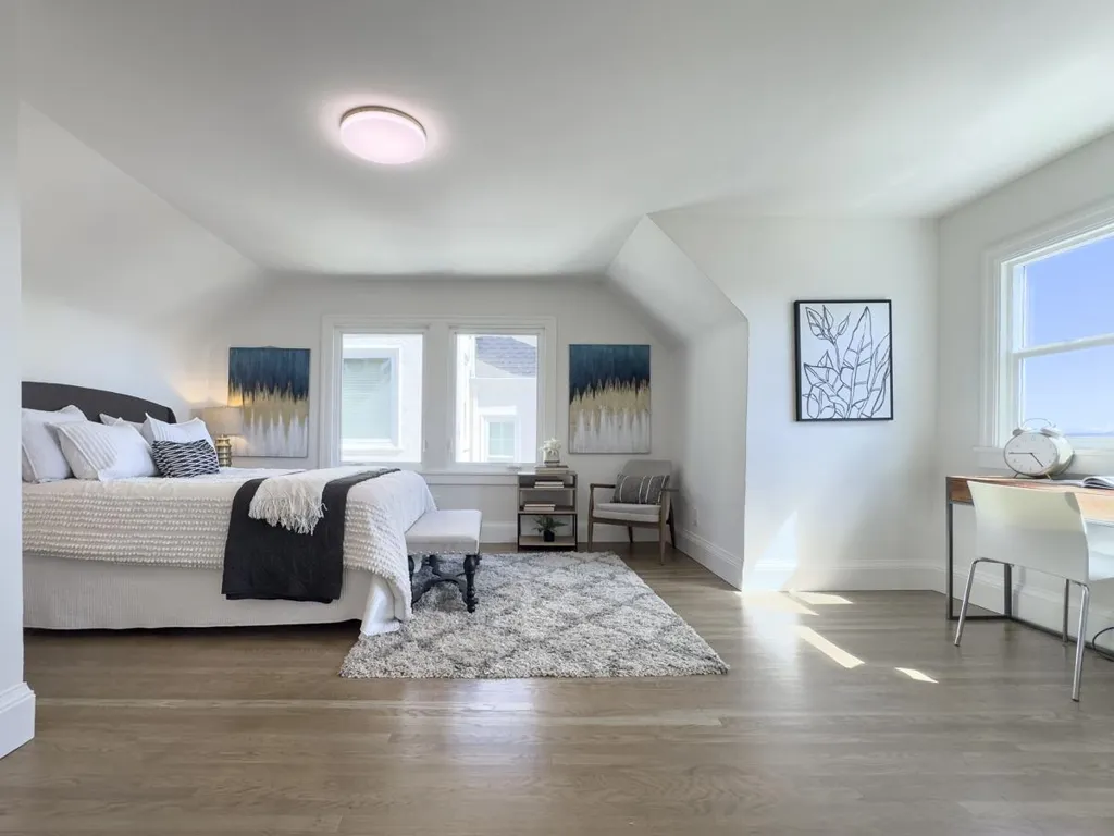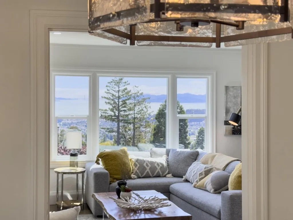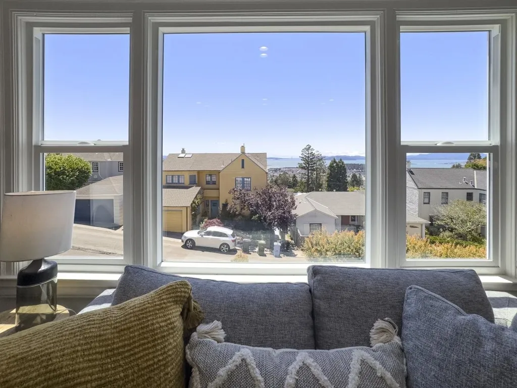 Beautifully updated, this 3-bedroom, 2-bath Cragmont home offers 1,784 sq ft of refined living and stunning Bay views. From the front porch, enjoy sweeping vistas of the Golden Gate Bridge, Angel Island, and the San Francisco skyline. Inside, natural light fills the living room with its classic fireplace and new floors. The open kitchen features stainless steel appliances, a gas range, bar seating, a breakfast nook, and a dining area—all oriented toward the iconic views. Two main-level bedrooms include one with Golden Gate views and dual closets, plus a serene garden-facing room. The refreshed hall bath adds modern style. Upstairs, the primary suite provides a peaceful retreat with skyline views, a walk-in closet, and an updated en suite bath. Just steps above, a bonus room captures unmatched bridge views—perfect for an office or guest area. The terraced backyard offers multiple outdoor spaces, complemented by a tandem garage, off-street parking, and a landscaped front yard. A rare find, this home delivers exceptional Bay panoramas in one of Berkeley’s most sought-after neighborhoods.