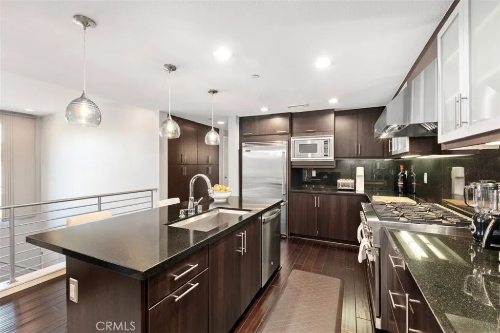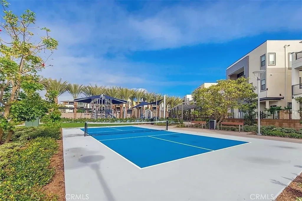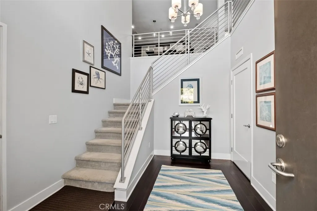 Enjoy breathtaking panoramic views from the magnificent wraparound terrace of this highly upgraded corner-end unit home, residence 1, situated in a prime location just steps away from the pool, spa, park, barbecue pavilion, and clubhouse in the exclusive Chelsea enclave at Central Park West. This elegant residence features approximately 1,727 square feet of living space, including three bedrooms, three bathrooms and two side-by-side car garage. The welcoming private entrance courtyard leads to a beautiful foyer and a bedroom with a custom Murphy bed, built-in office and a full bathroom. The home boasts a gourmet kitchen with a central island that opens seamlessly into the living and dining areas, creating a perfect free-flowing open-concept layout. It includes European cabinetry, stylish custom black slab granite countertops with a full backsplash, and stainless-steel Viking appliances. Additional features encompass beautiful hardwood flooring, custom window coverings, and a laundry linen room with ample storage. The spacious and bright bedrooms are adorned with custom carpeting, while the luxurious master bathroom includes double sinks, a spacious shower, and custom tile flooring. Interior finishes reflect over $100,000 in custom upgrades, including American walnut Garrison Collection hardwood floors, suede window shades, glass shower doors in the bathrooms, designer wallpaper, elegant light fixtures, custom paint throughout, upgraded cabinetry, and Swiss Trax flooring in the garage, among other enhancements. The 8,000-square-foot clubhouse and recreation center offer an array of amenities, including two junior Olympic saline pools, three outdoor Jacuzzi /spa, a barbecue pavilion, a state-of-the-art fitness center, an outdoor half-basketball court, and a pickle-ball court. Experience the unparalleled lifestyle of Orange County’s newest resort-style and recreational oasis, the Central Park West master-planned community.