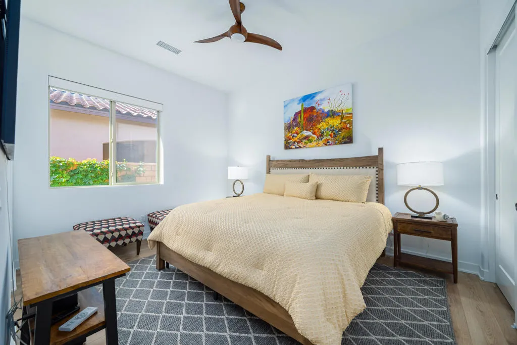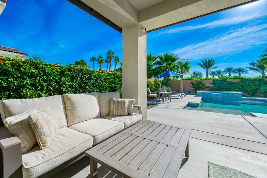 Priced to sell fast! Short term rental approved. Welcome to 80409 Platinum Way, an elegant modern pool home nestled in the heart of PGA West Signature gate. Built in 2021, this contemporary desert home blends clean architectural design with warm, inviting spaces that capture the essence of luxury desert living. From the moment you arrive, you’re greeted by sleek lines, a beautifully landscaped exterior, and a sense of tranquility that defines the lifestyle this sought-after community offers.Step inside to discover an open and airy floor plan. The home features three spacious bedrooms and two-and-a-half bathrooms, thoughtfully designed for both comfort and sophistication. The living areas flow seamlessly from the bright great room to the modern chef’s kitchen, complete with high-end finishes, stainless steel appliances, and an expansive center island perfect for entertaining. Large windows flood the interior with natural light, while the neutral palette and contemporary fixtures create a timeless elegance throughout.Inside flows to the exterior with a wall of window sliders that open to a true desert oasis. With endless palm trees and mountain views, you have a gorgeous, sparkly, salt water pool and spa and firepit as well as a covered patio area for relaxing.This property provides the ideal balance of privacy and convenience. Whether you’re relaxing on the covered patio, hosting guests in the open living space, or enjoying the peaceful mountain views, every detail has been crafted for effortless indoor-outdoor living. The home also includes an attached two-car garage and golf cart garage. It is super efficient with solar that transfers to the buyer at $47 per month, and energy-efficient construction, ensuring comfort and ease in every season. The community also offers a fitness center and oversized pool at no extra charge. Ask us about membership to PGA West. With 6 golf courses, tennis, pickle ball, fitness and dining, its a great option. Make it your private home, or a short term rental. Furnishings negotiable. This is a true winner. Call to view today.