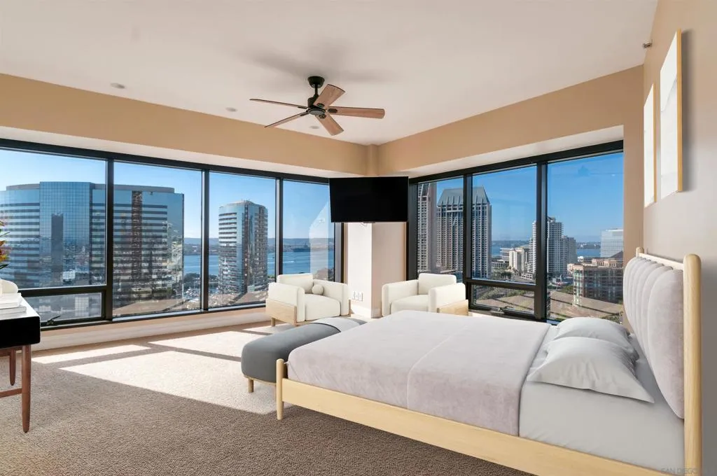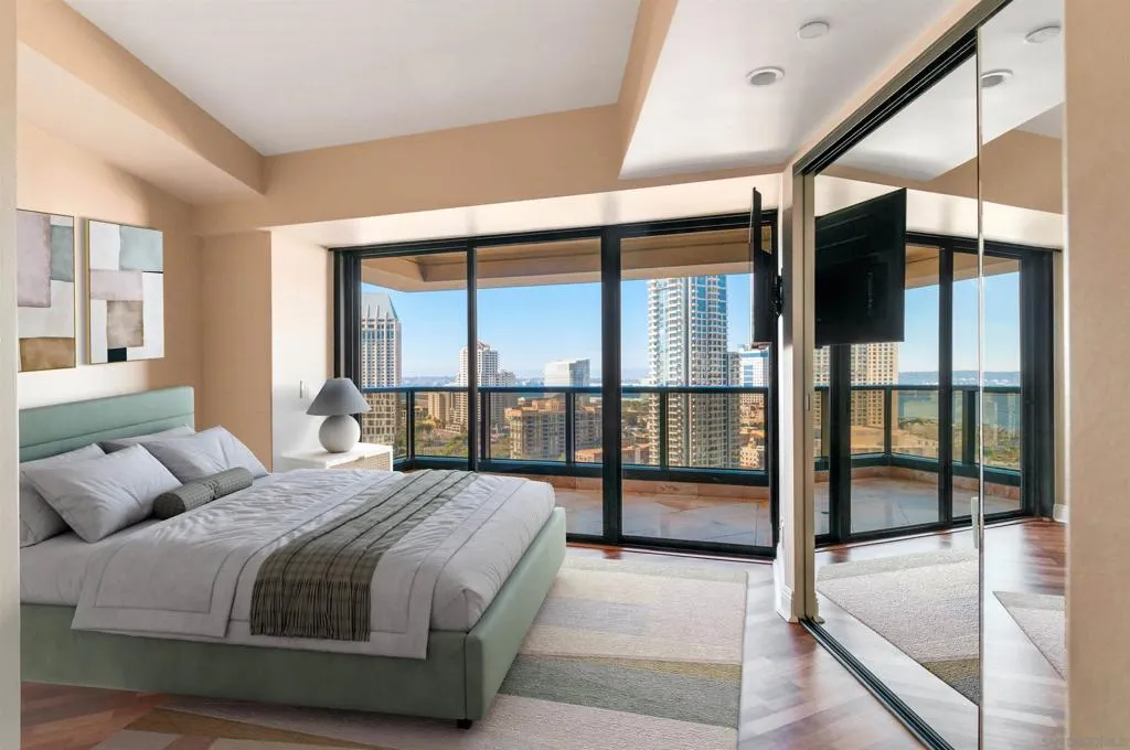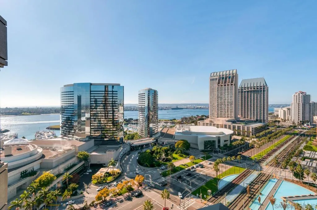 Discover an elevated lifestyle at The Harbor Club, one of Downtown San Diego’s most distinguished addresses. This iconic twin-tower residence rises 41 stories above the city, positioning you moments from Balboa Park, the San Diego Zoo, Petco Park, the Rady Shell, Seaport Village, and Little Italy – with San Diego International Airport conveniently nearby. Embrace effortless luxury in this full-service high-rise, where 24-hour concierge service, premium security, and resort-inspired amenities – including a sparkling pool, relaxing sauna, and state-of-the-art fitness center. This exceptional residence captures sweeping views of San Diego Bay and the dynamic city skyline. Floor-to-ceiling windows and a private balcony frame spectacular water vistas and mesmerizing sunsets, creating an ever-changing backdrop for your daily life. A fresh coat of paint, new floors, new matching appliances, upgrades to the bathrooms, and a custom primary closet make this unit both elegant and functional. The Harbor Club delivers the ultimate lock-and-leave lifestyle, ideal for retirees, second-home buyers, or professionals seeking classic sophistication. Discover an elevated lifestyle at The Harbor Club, one of Downtown San Diego’s most distinguished addresses. This iconic twin-tower residence rises 41 stories above the city, positioning you moments from Balboa Park, the San Diego Zoo, Petco Park, the Rady Shell, Seaport Village, and Little Italy – with San Diego International Airport conveniently nearby. Embrace effortless luxury in this full-service high-rise, where 24-hour concierge service, premium security, and resort-inspired amenities – including a sparkling pool, relaxing sauna, and state-of-the-art fitness center. This exceptional residence captures sweeping views of San Diego Bay and the dynamic city skyline. Floor-to-ceiling windows and a private balcony frame spectacular water vistas and mesmerizing sunsets, creating an ever-changing backdrop for your daily life. A fresh coat of paint, new floors, new matching appliances, upgrades to the bathrooms, and a custom primary closet make this unit both elegant and functional. The Harbor Club delivers the ultimate lock-and-leave lifestyle, ideal for retirees, second-home buyers, or professionals seeking classic sophistication.