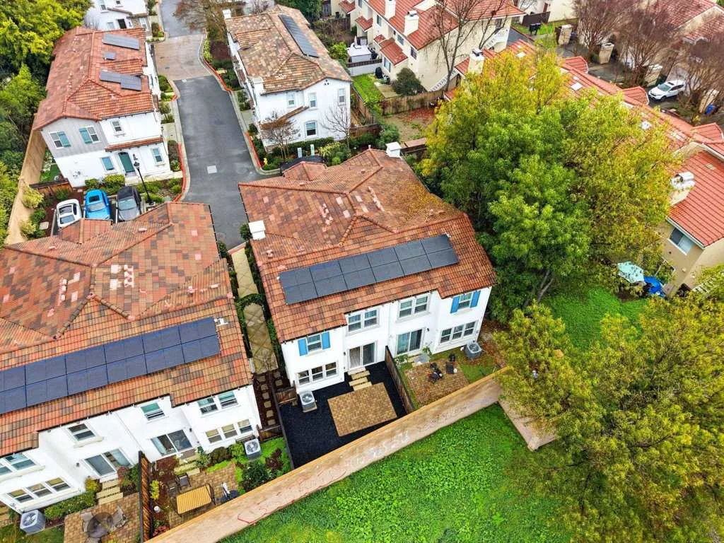 Welcome to this bright and inviting home, featuring an open, airy floor plan and abundant natural light. Built in 2022, this home offers modern design, owned solar panels, smart-home features, energy efficiency, and low-maintenance living. The beautifully designed kitchen and living area are perfect for everyday living and entertaining, featuring elegant quartz countertops, a designer-selected full-tile backsplash, and GE stainless steel Energy Star® appliances, including a gas range, microwave, and dishwasher. The spacious great room opens to a private rear yard finished with stylish patio pavers, ideal for outdoor dining and gatherings. Upstairs, the expansive primary suite offers serene hill views, dual walk-in closets, a double-vanity bath, and a tastefully tiled walk-in shower. Both the primary and guest bathrooms feature sleek Piedrafina marble countertops. Additional conveniences include an upstairs laundry room with upper cabinetry, a generous two-car garage with EV charger, water softener, instant hot water with RO purifier, and fresh interior paint throughout. The HOA is $295/month and covers front and common area landscaping, streets, storm drainage, street pavers, stone walls, wood fencing.