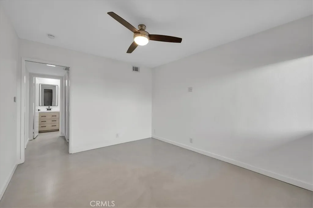 Welcome to Ramona Villas, a gated community designed by renowned architect Richard Harrison. Situated on Fee Land, this single-level, end unit offers effortless living with no steps, only one shared wall, no neighbors above or below. Its desirable location brings in all the desert light and enhanced by skylights. This tastefully updated home features new concrete flooring, new dual-pane windows and sliders, an open-concept living area, and upgraded kitchen and baths. The spacious primary suite includes two closets, a remodeled ensuite bath, and direct access to a private patio. A second bedroom is conveniently located across from hall bath. The full-size stacked washer and dryer are also included. The private north- and west-facing backyard offers two covered patios, a lawn area for pets, and mountain views. Ideally positioned across from the clubhouse, saltwater pool and spa, fitness room, and sauna. The home also sits just steps from EV charging stations and tennis courts. The end-space covered carport includes built-in storage cabinets, with an additional storage closet outside the unit. The low HOA covers the roof, earthquake insurance, water, trash, and rear-yard maintenance. Within a secure gated setting and just minutes from downtown Palm Springs dining, shopping, and entertainment, this exceptional home delivers comfort, style, and an enviable desert lifestyle.