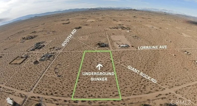 Rare opportunity in the heart of Landers. This expansive 5-acre desert parcel features an existing underground bunker (unpermitted)—a truly unique element that sets this property apart and sparks endless creative potential. Located just 5–10 minutes from the iconic Giant Rock, the property offers a deep sense of seclusion paired with sweeping panoramic desert and mountain views. The wide-open landscape delivers privacy, quiet, and a genuine connection to the high desert—ideal for those seeking something beyond the ordinary. Despite its peaceful setting, you’re still minutes from some of the area’s most celebrated destinations, including La Copine and Giant Rock Meeting Room, blending solitude with access to Landers’ vibrant local culture.