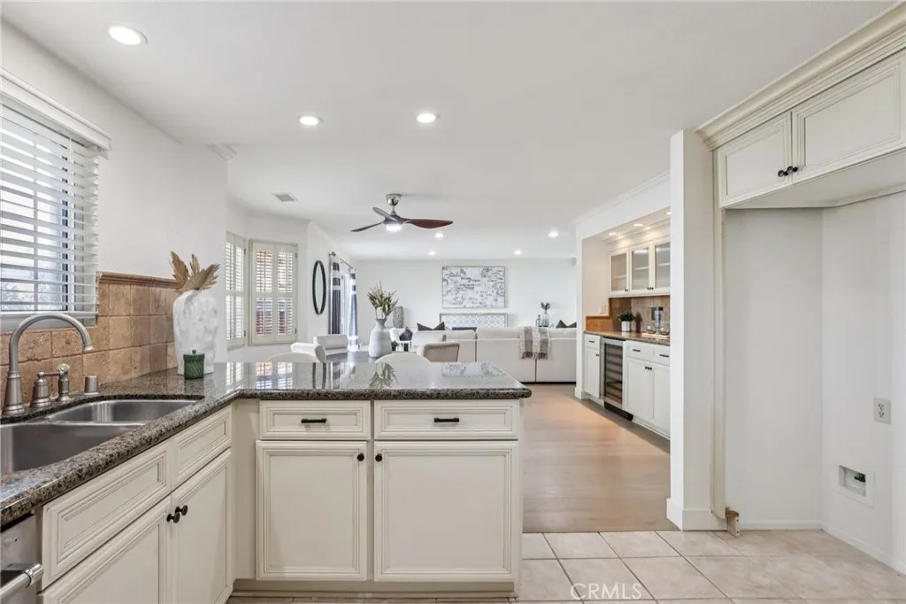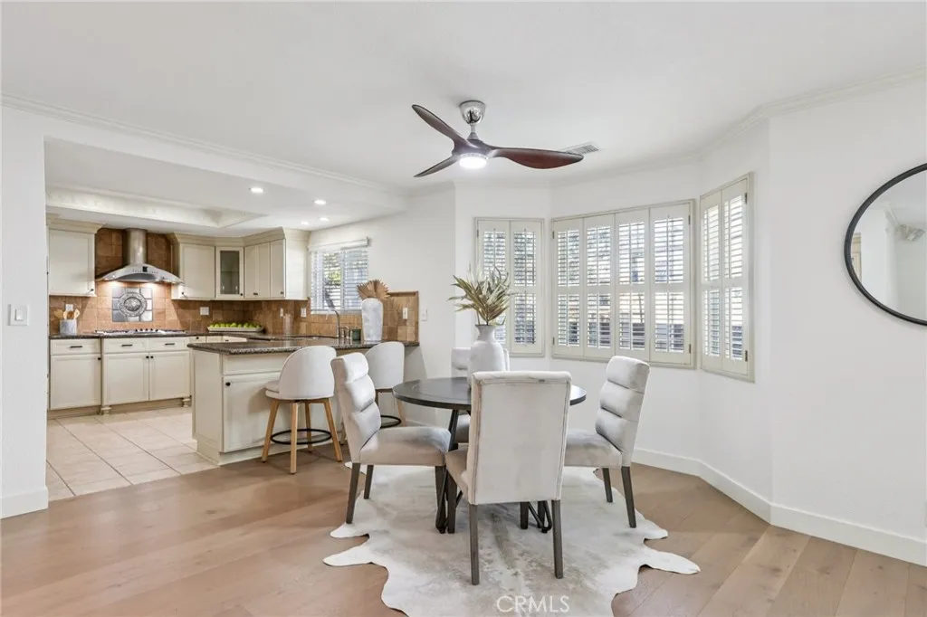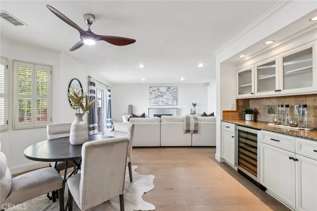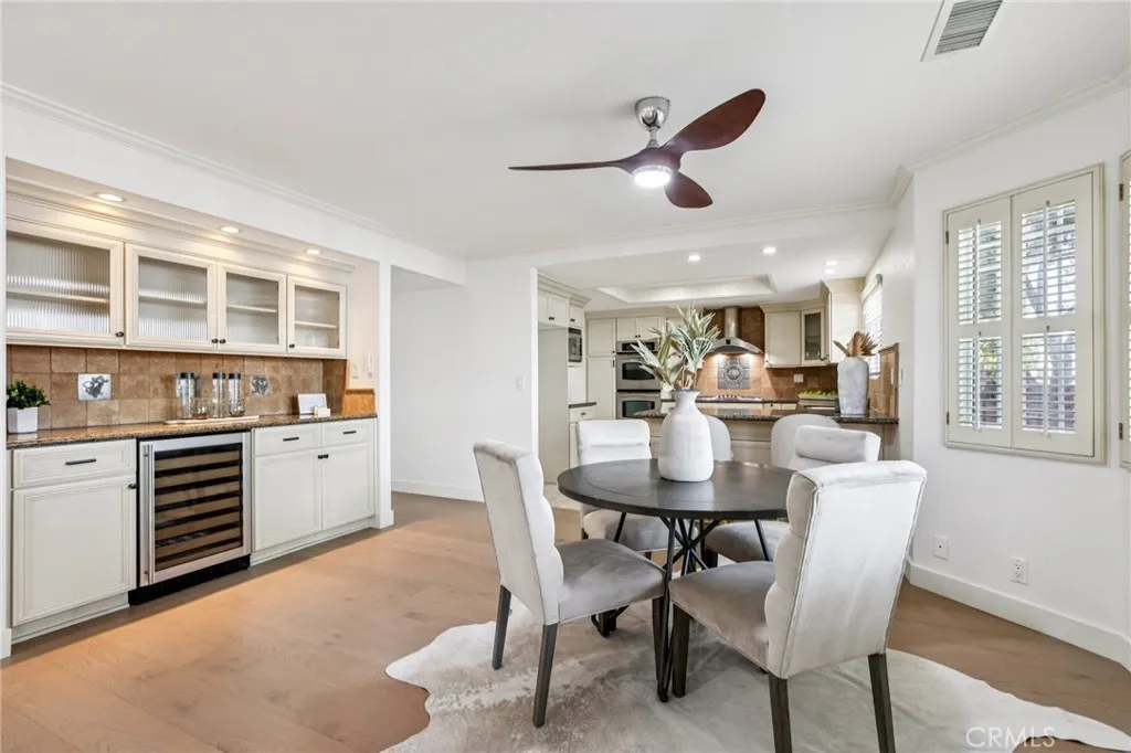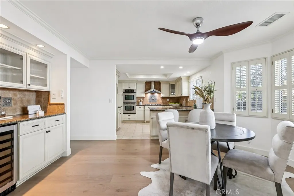 The home unfolds into a series of inviting spaces that make life feel both organized and effortless. A formal dining room sets the scene for special occasions, while an additional dining area keeps everyday meals easy and relaxed. The bar area, complete with a wine fridge, is perfectly positioned for entertaining (and yes, well-timed refills).