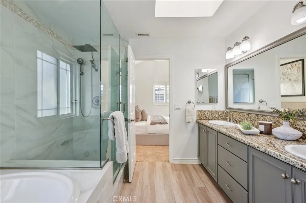 Upstairs, brand-new carpet adds comfort to all four bedrooms. The primary suite goes all-in on relaxation with its generous size, double vanity with granite counters, a jetted tub for long soaks, and a rainfall shower that makes mornings feel downright luxurious. Three additional spacious bedrooms, a full bathroom with double vanity, and a separate laundry room round out the second floor.