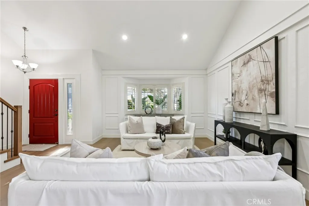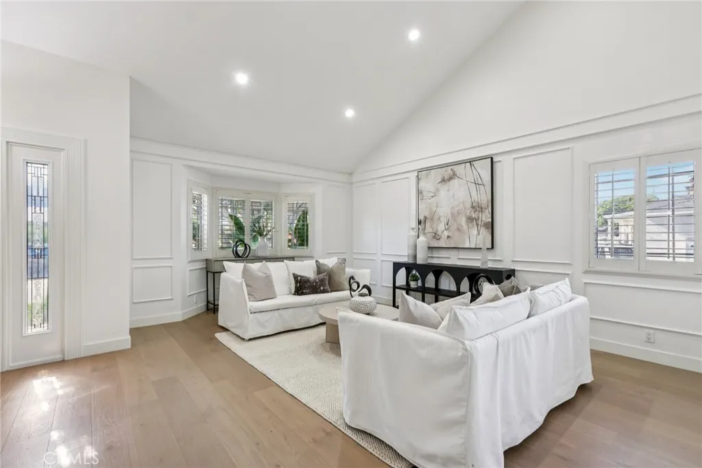 Engineered white oak floors flow throughout the home, setting a clean, modern tone from the moment you step inside. The entry opens into a charming family room dressed in classic wainscoting—perfect for game nights, homework marathons, or decompressing after a long day.