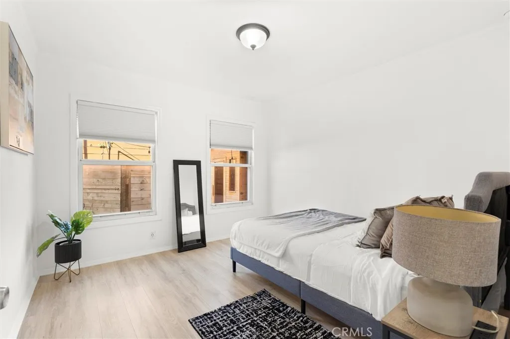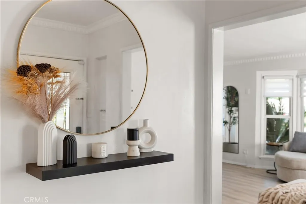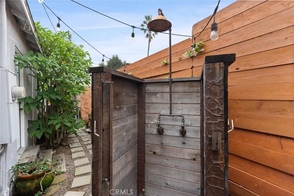Set on a corner lot in Inglewood’s Century Heights neighborhood, this updated residence offers a well proportioned layout with natural light across more than 1,500 square feet. Preferred east west exposure enhances the spacious living room with wide plank flooring, bay windows, and a stone fireplace. The remodeled kitchen features shaker cabinetry, quartz countertops, stainless steel appliances, and a cedar breakfast nook beneath a secong bay window, with a dedicated laundry and mudroom just off the kitchen that includes a newer washer and dryer and direct access to the backyard. The primary suite includes a bold accent wall, dual vanity sinks with marble countertops, a door opening to a redwood deck, an infrared cedar sauna, and an outdoor rain shower. The backyard enjoys redwood decking, pergola-covered living and dining area, mounted television, stone pathways, raised garden beds, and established fruit and ornamental landscaping. A detached two car garage on this corner lot provides future opportunity for ADU conversion or flexible additional living space. Additional highlights include central AC, a tankless water heater, and soundproof triple pane windows. Conveniently located near dining, shopping, parks, and major destinations including SoFi Stadium, YouTube Theater, and Intuit Dome, this Century Heights home offers privacy, indoor outdoor living, and long term flexibility.