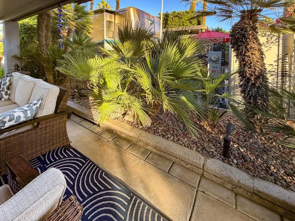 Step into resort living with this inviting pergola lot at Outdoor Resort Indio–a great opportunity to own in one of the desert’s premier Class A motorcoach communities. This property offers a comfortable and private outdoor lifestyle with mature landscaping and a raised back patio that expands your living space.The solid-roof pergola provides shade and comfort, enhanced by two ceiling fans for warm afternoons and outdoor seating that makes relaxing with friends easy. A charming water feature at the rear of the lot adds a peaceful ambiance, creating a soothing backdrop for morning coffee or sunset gatherings. Just a short walk from the nearby satellite pool, hot tub, sauna, and laundry, this location blends convenience with resort-style comfort.Whether you’re looking for a seasonal getaway or your place in the ORI community, this lot delivers excellent value and lifestyle appeal. Outdoor Resort Indio is a class A only RV resort.