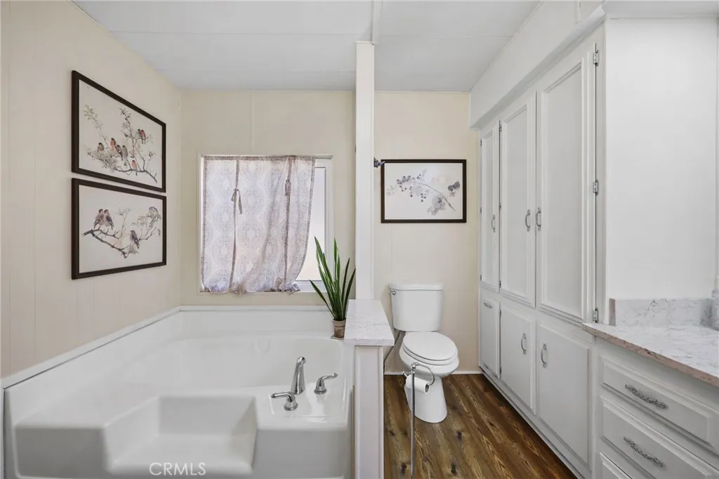 Natural light fills the interior through multiple functional windows that encourage refreshing cross-breezes. All windows have been upgraded to dual-pane, and the sun-facing front room includes an additional light- and heat-diffusing film to protect furnishings and maintain comfortable interior temperatures. The primary bedroom offers subdued lighting for rest and relaxation, along with an ensuite bathroom featuring a deep soaking tub—ideal for easing aches and unwinding at the end of the day. A dedicated laundry room includes a nearly new top-loading washer and gas dryer, plus a built-in quartz desk that doubles as a planning station or folding surface. The back door opens to the covered carport and a generously sized storage shed. Year-round comfort is ensured with central A/C for warm summer days and a gas furnace for cool fall evenings.