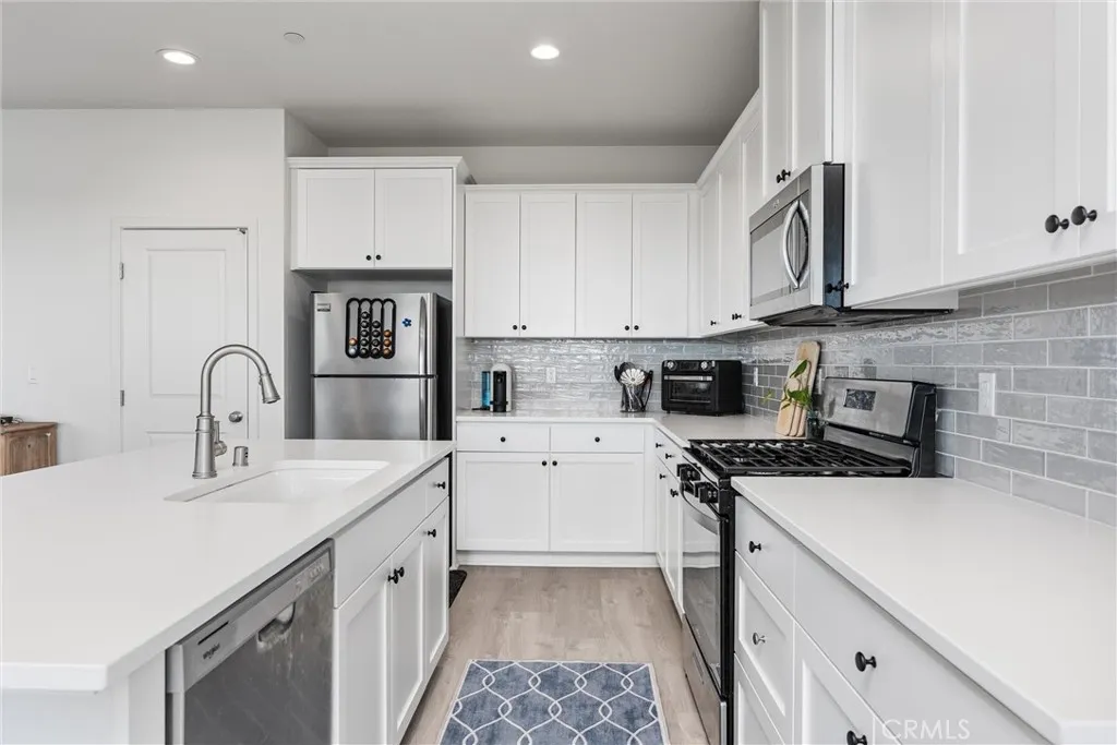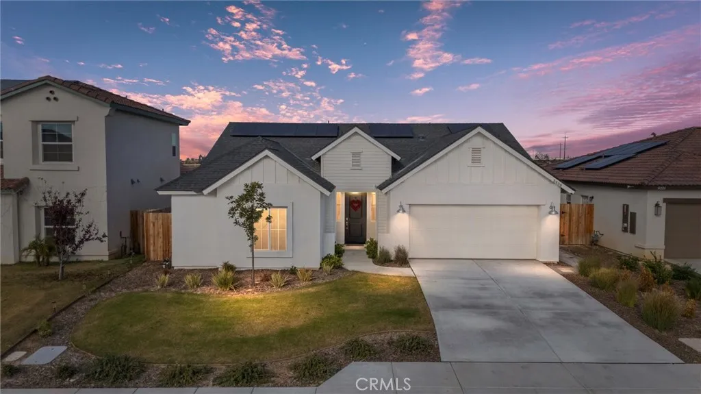 Want new construction with builder & owner upgrades right now? Welcome to this 2024 built Balfanz modern farmhouse in the Almond Creek community of NW Bakersfield. Located on a quiet cul-de-sac, this 1,873 sq ft, 4 bed, 2 bath home offers a grand living space, perfect for family gatherings to relax or eat around the dinner table. The split-wing layout includes luxury vinyl flooring, quartz counters with stainless steel appliances in the kitchen, duel bathroom sinks, large walk-in shower, and walk-in closets in every bedroom, including a custom organized system in the primary suite. Sun-filled interiors are adorned with recessed lighting, though natural light makes flipping switches optional. This 2 car garage home also features a finished backyard — complete with a covered patio, artificial turf for low-maintenance landscaping, a block wall, and no rear neighbors for added privacy! Your new home awaits!