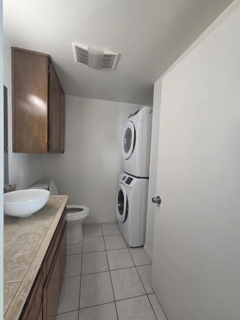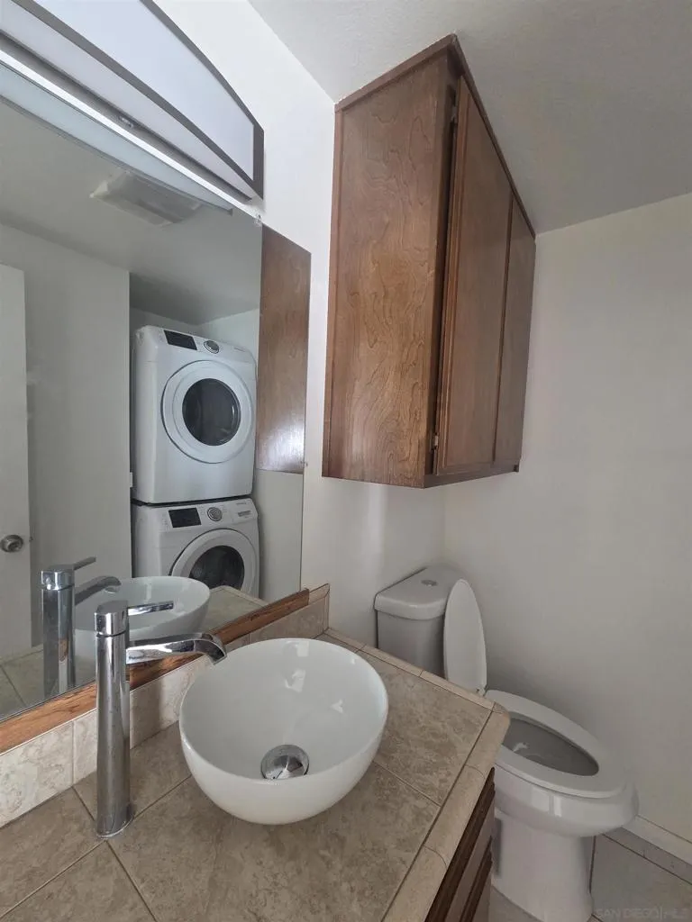 Welcome to this spacious 2 bedroom and 1.5 bath end-unit townhome, bathed in natural light and nestled on a quiet street. The property features gated, remote control access to two covered parking located below this unit. Inside, you’ll find a well-designed layout with two generously sized master bedrooms upstairs, each with ample closet space and connected by a stylish Jack-and-Jill bathroom. Downstairs, there’s a convenient half-bath for guests. The kitchen features abundant storage, tile countertops, a stainless steel sink, a gas stove, and a refrigerator. A sunny refreshed balcony off the living space provides the perfect spot to relax. Additional conveniences include stackable washer and dryer and a security screen door for added peace of mind. Situated in a prime San Diego location, this home is centrally located near shopping, parks, golf courses, bus lines, and John Marshall Elementary School. Whether you’re looking for a primary residence or an investment opportunity, this home is perfectly positioned to offer the best of city living with comfort and convenience. Ideal for first-time homebuyers or small families looking to build equity. Don’t miss this incredible opportunity to own a home in the heart of San Diego—close to everything! Located close to shopping, parks, schools and bus lines. HOA covers water and trash. Selling as is! Bring all offers!