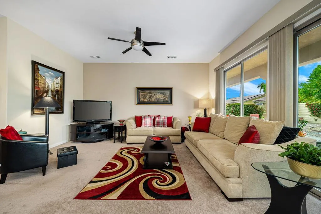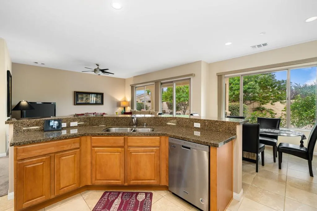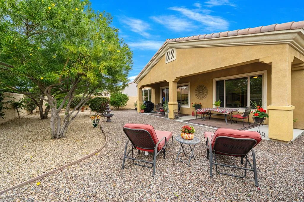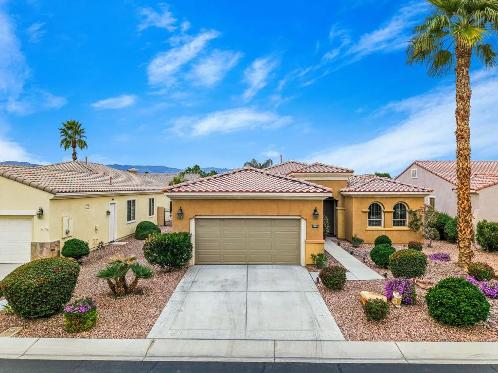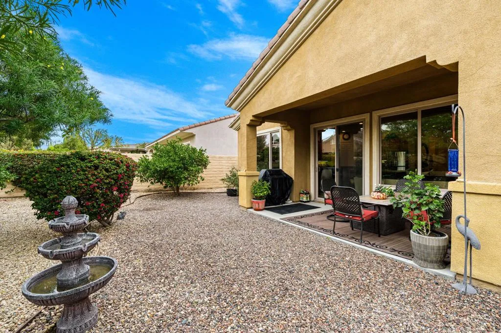 Welcome to this beautiful Avalino residence in Del Webb’s premier 55+ active adult community, Sun City Shadow Hills. This 1,763 sq ft home is being sold FURNISHED (per inventory), offering an effortless transition to full-time living or seasonal enjoyment. The thoughtfully designed layout features two well-separated bedrooms, one with an en-suite bathroom, a versatile den/home office/3rd bedroom, and a spacious 2-car garage, providing functionality and convenience.Once outside, you’ll enjoy an oversized private backyard with low-maintenance landscaping, fruit trees, a large covered patio, and plenty of space to add a pool and spa–perfect for relaxing, entertaining, or creating your own desert oasis. The open-concept living and dining areas flow seamlessly, ideal for hosting friends and family or enjoying quiet evenings at home.Sun City Shadow Hills offers an active, resort-style lifestyle with championship golf courses, tennis and pickleball courts, state-of-the-art fitness centers, sparkling pools, vibrant clubhouses, and a full calendar of social activities. Nestled in the stunning Coachella Valley near Palm Springs, this exceptional home combines comfort, convenience, and the perfect blend of relaxation and recreation for active adults.