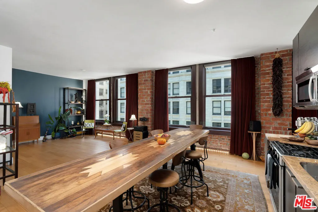 High style and cool vibes come together in this sunny and serene 1-bedroom, 2-baths DTLA loft in the iconic Rowan Building. This south-facing 8th floor condo has all-day light and skyline views along with dramatic high-ceilings, gorgeous hardwood floors, 6 huge windows, and exposed brick walls. Phillips Hue lighting lets you set the mood, while custom-made floor-to-ceiling blackout velvet curtains give you ultimate privacy. The expansive, spacious layout gives you one ensuite bathroom, and a second full-bath off the oversized living room. The gourmet kitchen features quartz counters, stainless appliances and tons of storage. Central heat & A/C, and in-unit stacked washer/dryer. The building’s MILLS ACT designation gives owners substantial yearly property tax savings up to 70%. Residents enjoy a beautifully restored lobby and hallways, 24-hour front desk and reception, controlled building and common-area access, a 2nd floor WIFI-enabled lounge, outdoor gardens, outdoor plunge pools, and BBQ grills. Grand Central Market, Spring Street Dog Park, Metro, Gallery Row, Little Tokyo and tons of live-music venues are all nearby. Parking available for rent.