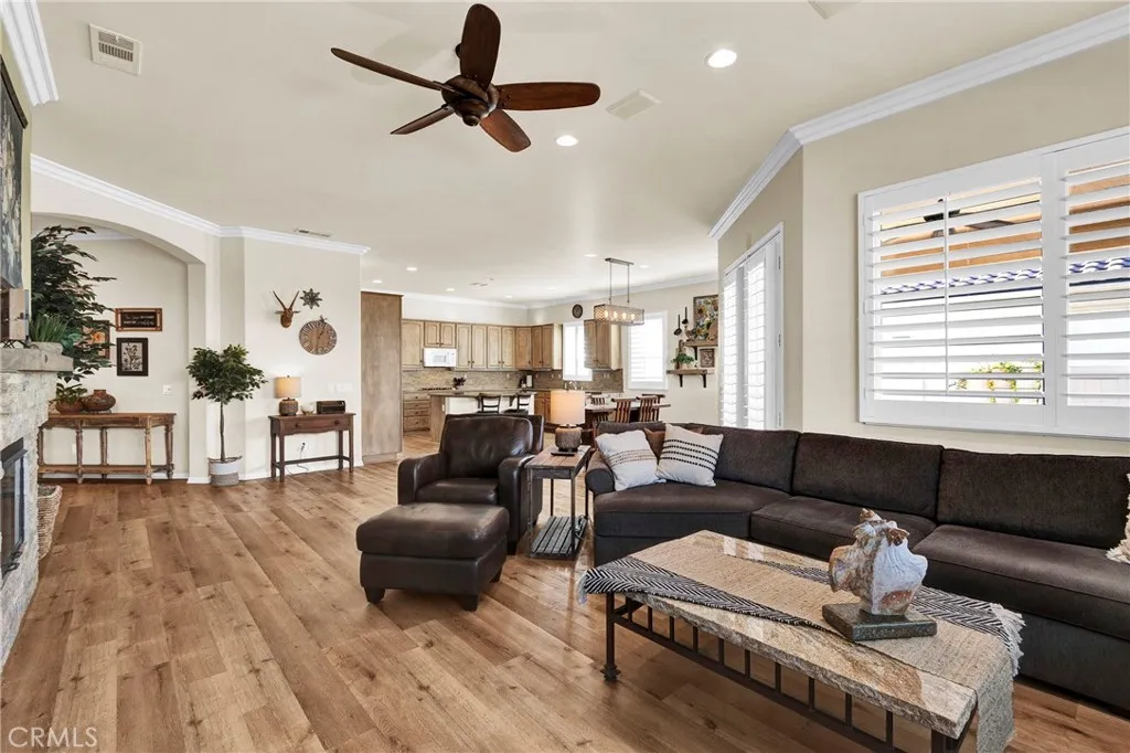 IMMACULATE ‘EMERALD’ Model (One Story 2,127 Sq ft – 2 Primary BRs – 3 BA + Den/Office) located in the Luxury 55+ Active Adult Community of Solera at Oak Valley Greens. Features and Upgrades include: Beautiful & Neutral LVT Flooring; Crown Molding; Plantation Shutters; Great Room Concept with Open ENTERTAINER’S kitchen featuring: Super Attractive RE-DONE CABINETRY, Large Kitchen Island w/Storage, Custom Backsplash, LOTS of Counters & Cabinets and Double Ovens; A Cozy Fireplace in Living Room; Custom Fans & Lights throughout Home; Separate Laundry Room with Storage, Pantry & Utility Sink; Very Private Yard with Covered Sitting, Garden & Grassy Areas. Price includes Refrigerator, Washer & Dryer – Attractive Furniture is Available (Not included). Solera at Oak Valley Greens offers a Great Clubhouse; Many Social Clubs and Activities to meet New Friends; Indoor Jogging track, Fitness center, Tennis courts, Pool/spa, Library; Bocce Ball and Billiards. The Solera 55+ Community has a Picturesque Mountain Backdrop, and is Freeway Close (I-10) – A Short distance to fabulous Shopping (Cabazon or Palm Springs); Casinos; Golf at Oak Valley Greens; Medical Facilities Close by & a short drive to the Charming City of Redlands to the west or Palm Springs to the East. If you’re looking for an UPSCALE 55+ Community, you won’t want to miss the Ideally Located Community of SOLERA at Oak Valley Greens.