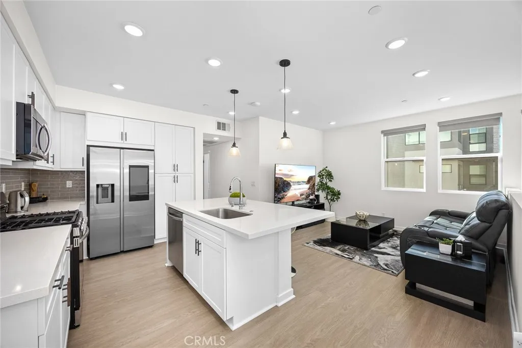 Elevate your lifestyle at 11026 Momentum Drive, an end-unit that perfectly captures the modern energy and sophisticated design of Rancho Cucamonga’s premier master-planned community, “The Resort.” This turnkey residence offers an “as-new” experience, reimagining the traditional townhome as a sleek, penthouse-style retreat. The arrival experience is effortless, featuring a direct-access garage enhanced with upgraded epoxy flooring that leads you into the home. From the entryway, you are guided to a light-filled second floor where the entire living experience unfolds on a single, seamless level. At the heart of the home, the gourmet kitchen features a large social island and an abundance of countertop space, flowing effortlessly into an open living area designed for both high-end entertaining and quiet relaxation. To one side, a door opens to your private balcony for morning coffee, to the other, a long hallway provides a quiet transition to the bedroom sanctuaries, modern bathrooms, and a convenient laundry closet. Every window is adorned with custom designer roller shades, adding a final layer of polished sophistication to the sun-drenched interior. Living at “The Resort” means more than just a home, it’s a celebration of life’s vibrant moments with a low HOA and No Mello-Roos. Enjoy exclusive access to five-star amenities including a designer clubhouse, conference room, high-performance gym, and a shimmering resort-style pool. Situated in a rapidly growing destination, you are just steps from local favorites like Teaspoon and a variety of new retail businesses opening soon. With Haven City Market, Ontario Mills, and the Toyota Arena just a short drive away, this property delivers the ultimate lifestyle experience.