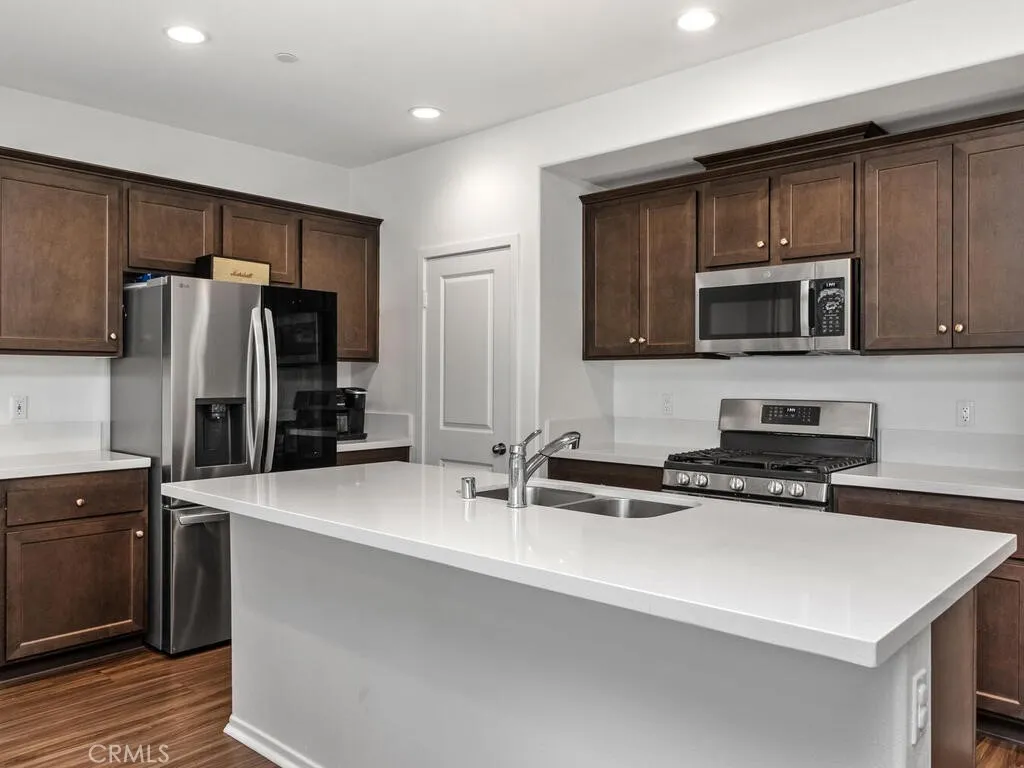 Welcome to Copper Sky, one of Winchester’s most desirable communities by Tri Pointe Homes. This better-than-new, beautifully maintained Plan 4 model offers one of the largest layouts in the development, featuring an open-concept design with luxury vinyl plank flooring, a light-filled great room, and a spacious kitchen complete with a generous island, stainless steel appliances, quartz countertops, and a walk-in pantry. Upstairs, you’ll find a versatile loft, perfect for a home office, playroom, or second living area, alongside all three bedrooms and a conveniently located large laundry room. The primary suite boasts a sizable walk-in closet and an ensuite bath with a walk-in shower and dual vanities. Additional highlights include recessed lighting throughout, new window blinds, eight solar panels for energy efficiency, and brand-new turf in the backyard for low-maintenance living. The home is just steps from the resort-style community pool, spa, BBQ area, and nearby parks. Located minutes from shopping, dining, and entertainment, with easy access to both Menifee and Temecula, this home combines style, space, and an unbeatable location.