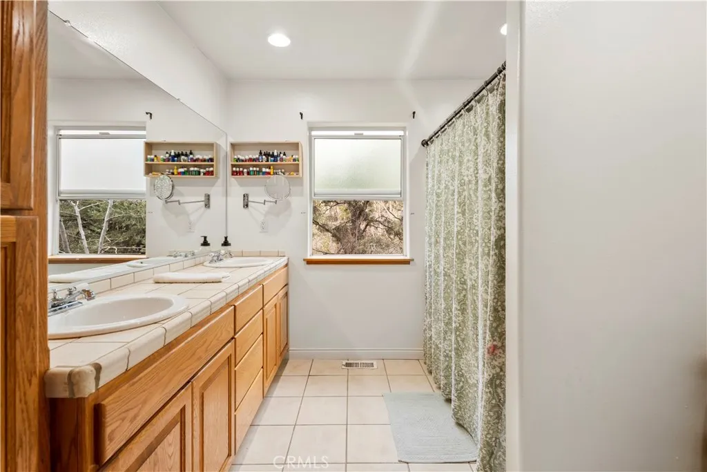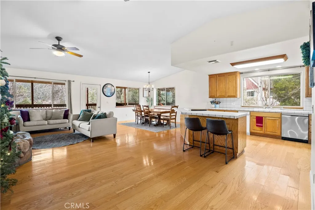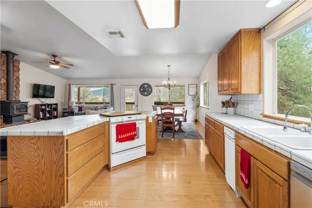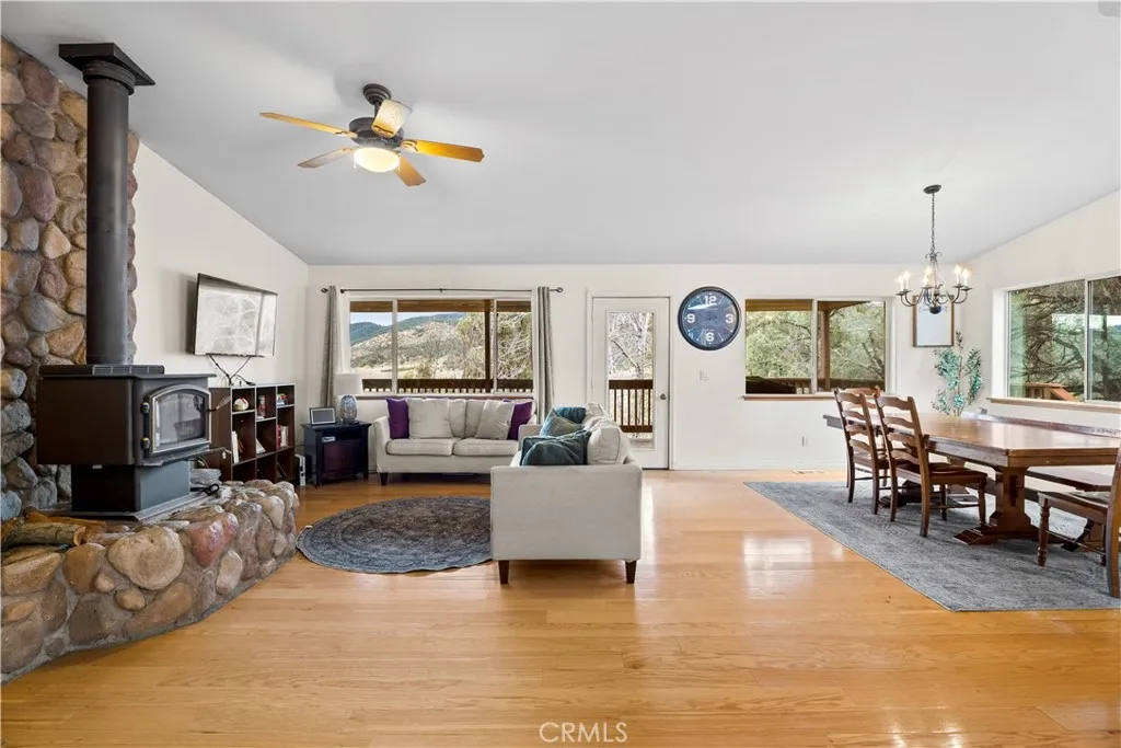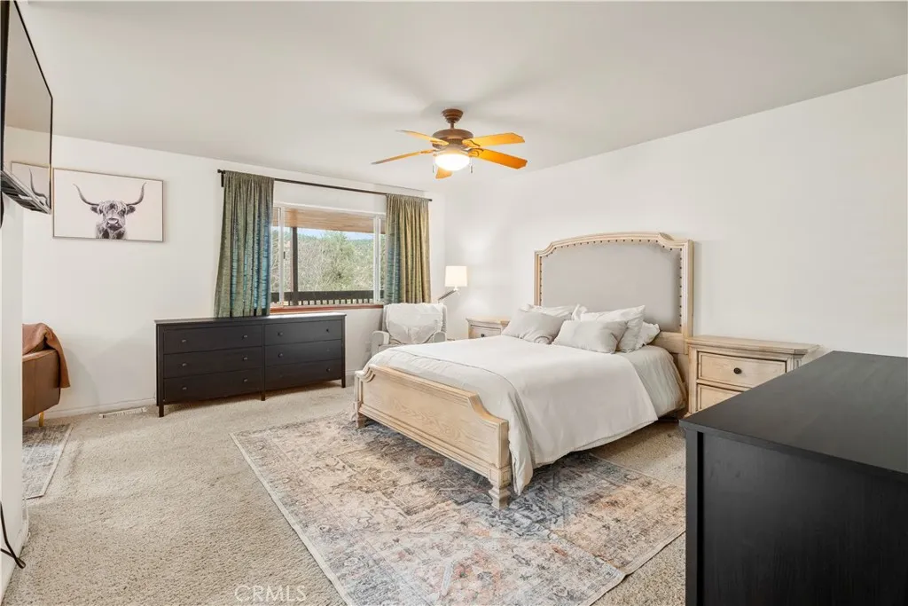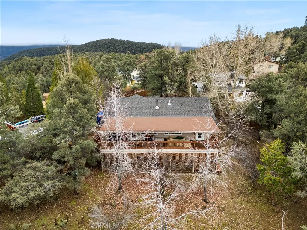 Tucked away on a quiet cul-de-sac in Pinion Pines Estates, this 4-bedroom, 3-bath mountain retreat offers privacy, panoramic views, and flexibility for both personal use and short-term rental opportunities with no HOA restrictions. Designed for comfort and functionality, the two-level layout features a welcoming main living area anchored by a freestanding wood-burning fireplace, creating a warm separation between the sitting and dining spaces. The kitchen is ideal for hosting, complete with a large tile island, breakfast bar, and built-in cooktop. Upstairs includes two spacious guest bedrooms and a private primary suite with a walk-in closet and en-suite bath, while the lower level offers an additional guest bedroom with its own full bathroom perfect for visitors or rental privacy. Step outside to an expansive wraparound covered deck ideal for morning coffee, sunset views, and mountain air. Additional highlights include a two-car garage with built-in cabinetry and workspace, a manicured front garden, and a long driveway suitable for RV parking. Whether you’re seeking a full-time residence, weekend escape, or income-producing vacation home, this property delivers mountain living with versatility and charm.