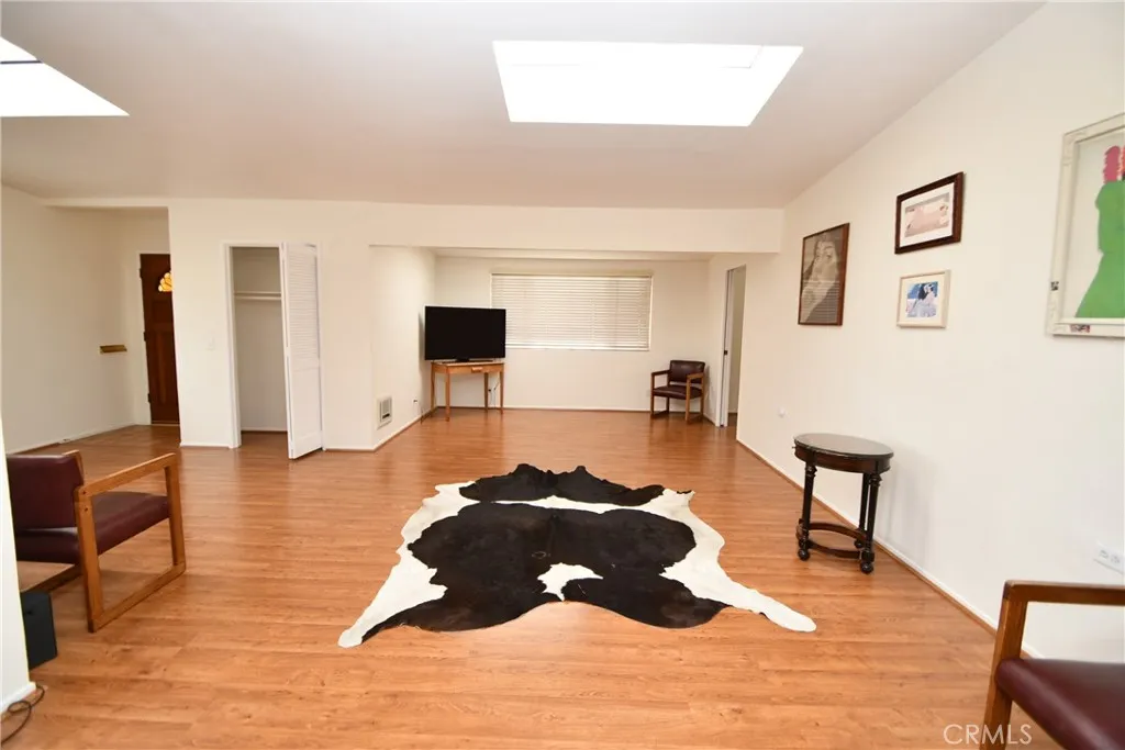 (M-2,1A) Welcome to the top of the map Leisure World 55+ active senior living community. Fully expanded 2 bedroom, 1.5 bath corner unit on a greenbelt with trees & lawn. Drive up access & private entrance. Lockable outside storage room on porch. Stain glass on wood door with screen. Lots of natural light from 5 skylights & 4 dual pane windows. Central air & heat. 3 closets inside unit, including a walk-in. Tile entry & laminate flooring throughout. Master bath has cut down shower with stack-able washer/dryer. Full mirrors in both bathrooms. Recess lighting. Kitchen has electric range, oven, microwave, refrigerator & lots of wood cabinets. Parking (Carport #21, space #11). Plenty of guest parking availability. Near by 3 churches within walking distance. Unit is near the beach with coastal breezes & close to shopping centers, dining, freeways, & LB airport.
