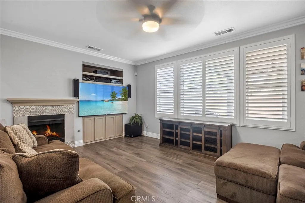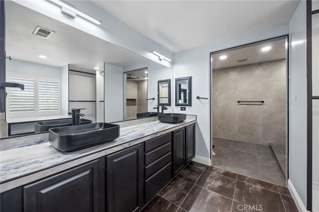 Inside, enjoy interior window shutters, crown molding, 6-inch baseboards, and LED lighting throughout. The flexible layout offers optional laundry upstairs or downstairs, a spacious loft, and a media room. The large primary bedroom serves as a true retreat, complemented by a newly remodeled primary bathroom with a luxurious 10-head shower and custom closets.