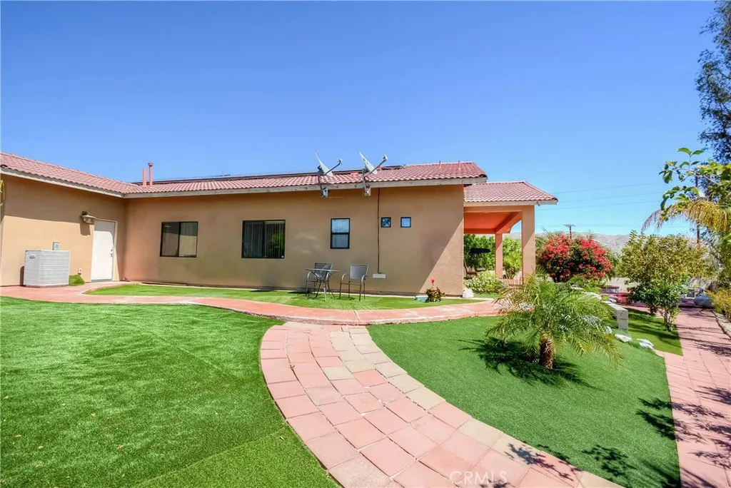 Located on a quite Cul-de-sac in the prestigious Mission Lakes Country Club, This beautifully maintained home features a FULLY PAID SOLAR SYSTEM and an oversized tow-car garage with golf cart storage. The open floor plan offers a spacious living room with a fireplce, vaulted 10-foot ceilings, and ceiling fans throughout. The kitchen includes an island, breakfast bar, granite countertops, and stainless steel appliances. Opening to the family room and dining areas with sliding glass doors leading to the swimming pool and backyard. The primary suite provides backyard access and features a jetted tub, separate shower, dual sinks, and walk-in closet. Each bathrom includes a bidet. The backyard is designed for year-round enjoyment with a swimming pool, heated spa, mature landscaping, and artificial turf. Mission Lakes Country Club amenities include an 18 hole Ted Robinson-designed championship golf course, clubhouse dining, resort-style saltwater pool and spas, tennis courts, and pickleball courts. UNLIMITED GOLF for two is included with ownership. Sold fully FURNISHED. A must see…
